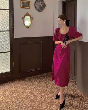 ドレス スリーブスタイル半袖サマーカラーレッドスカート ショート レース ハーフスリーブ 夏物 スクウェア ブラックストロベリース17729016670