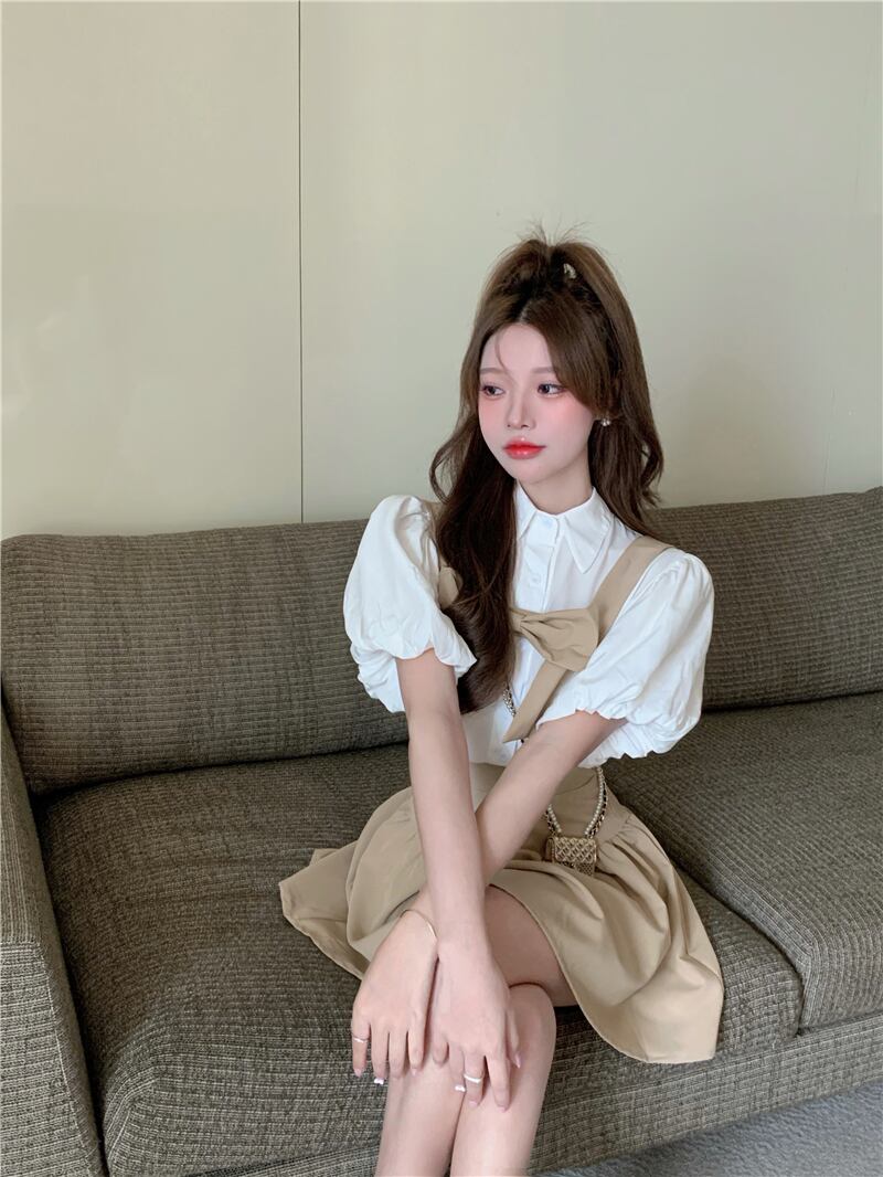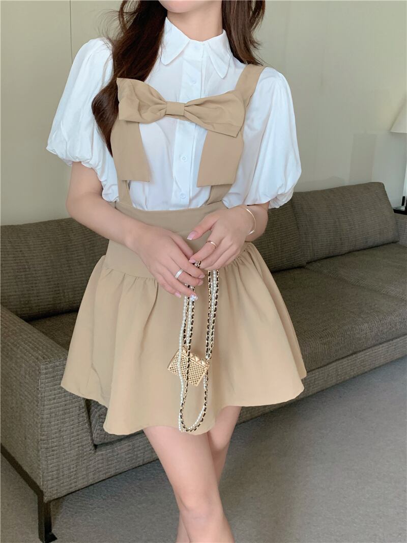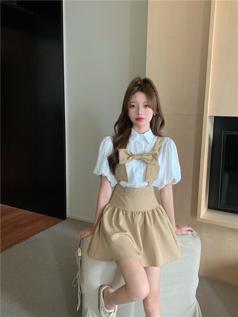 スカート ハイウェストウェストスリムリボンショートサマー薄手Aライン 夏物 ブラックストロベリース45787946026
