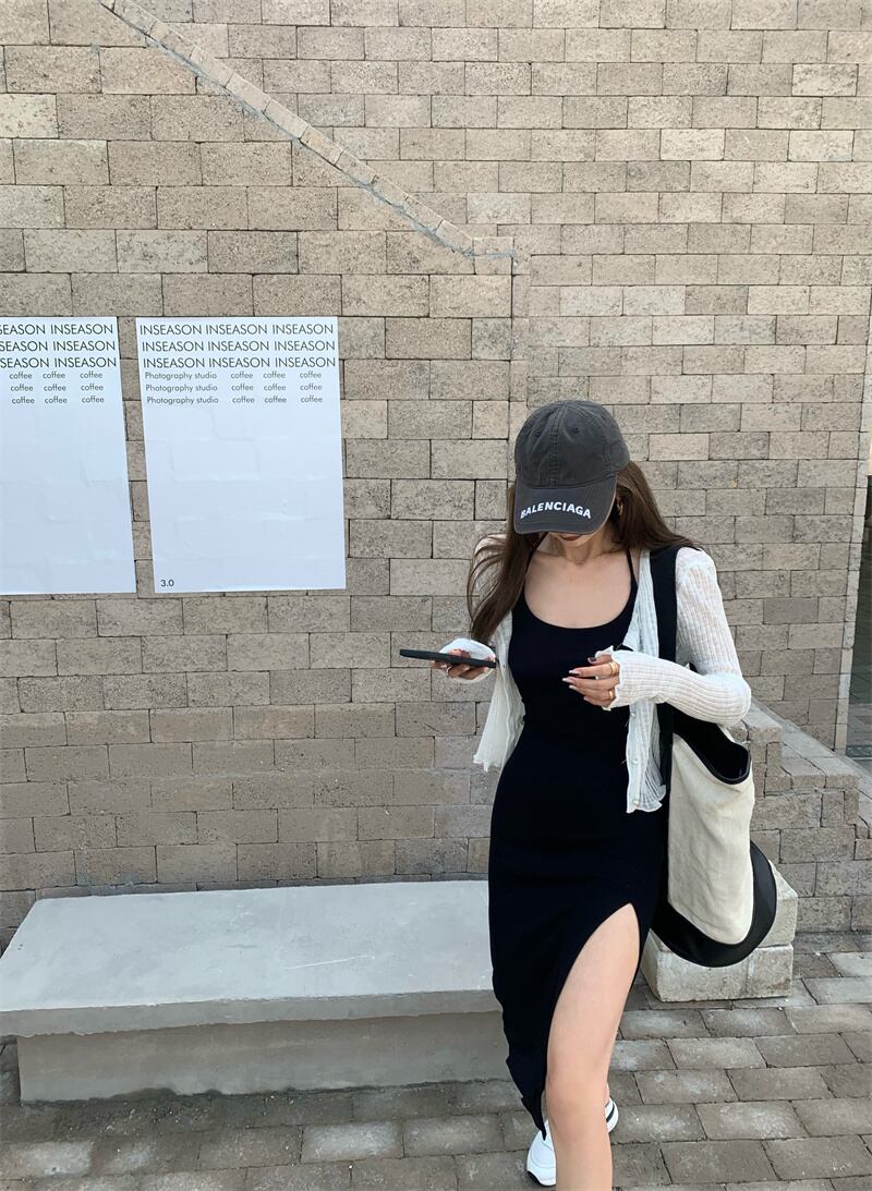 ドレス サマースカート ウェストスリム 夏物 ブラックストロベリース24775985203