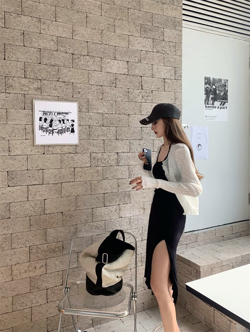 色:カーディガンドレス,黒いドレス,白いカーディガン,アプリコットカーディガン