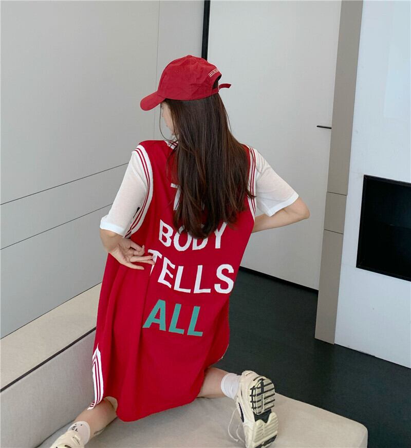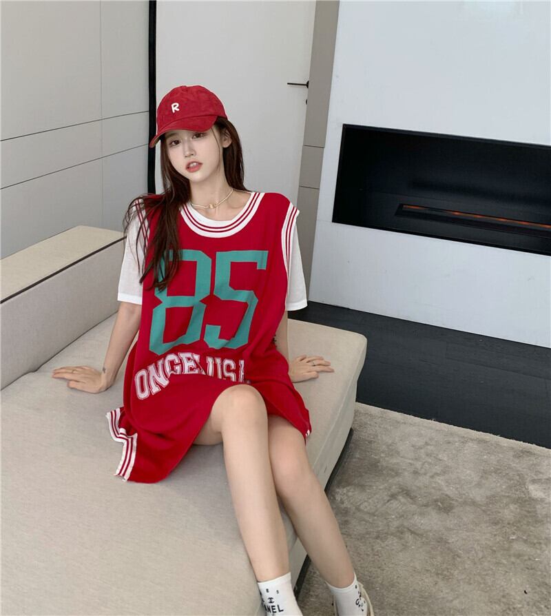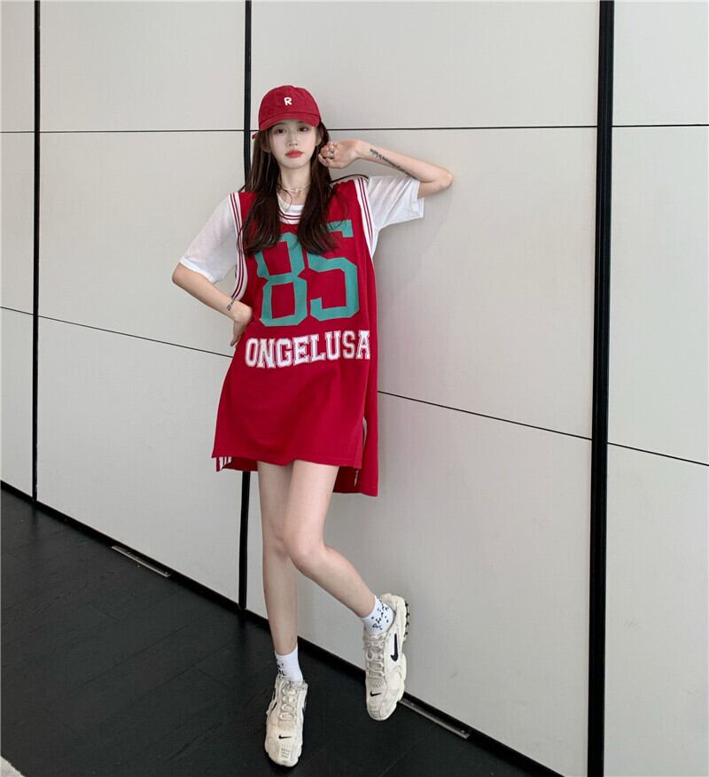 色:シャツ,赤ミディアムロングT,ブラックミドル丈T