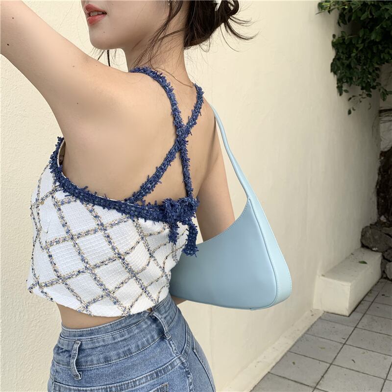 格子柄サマーショートホワイトトップス 夏物 ピュア ブラックストロベリース26475238602
