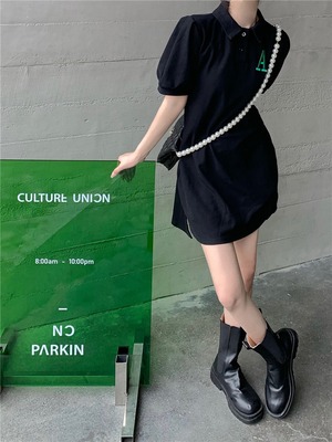 カラーTシャツ ドレス ショートスカート サマー ピンク 夏物 ブラックストロベリース12124785210