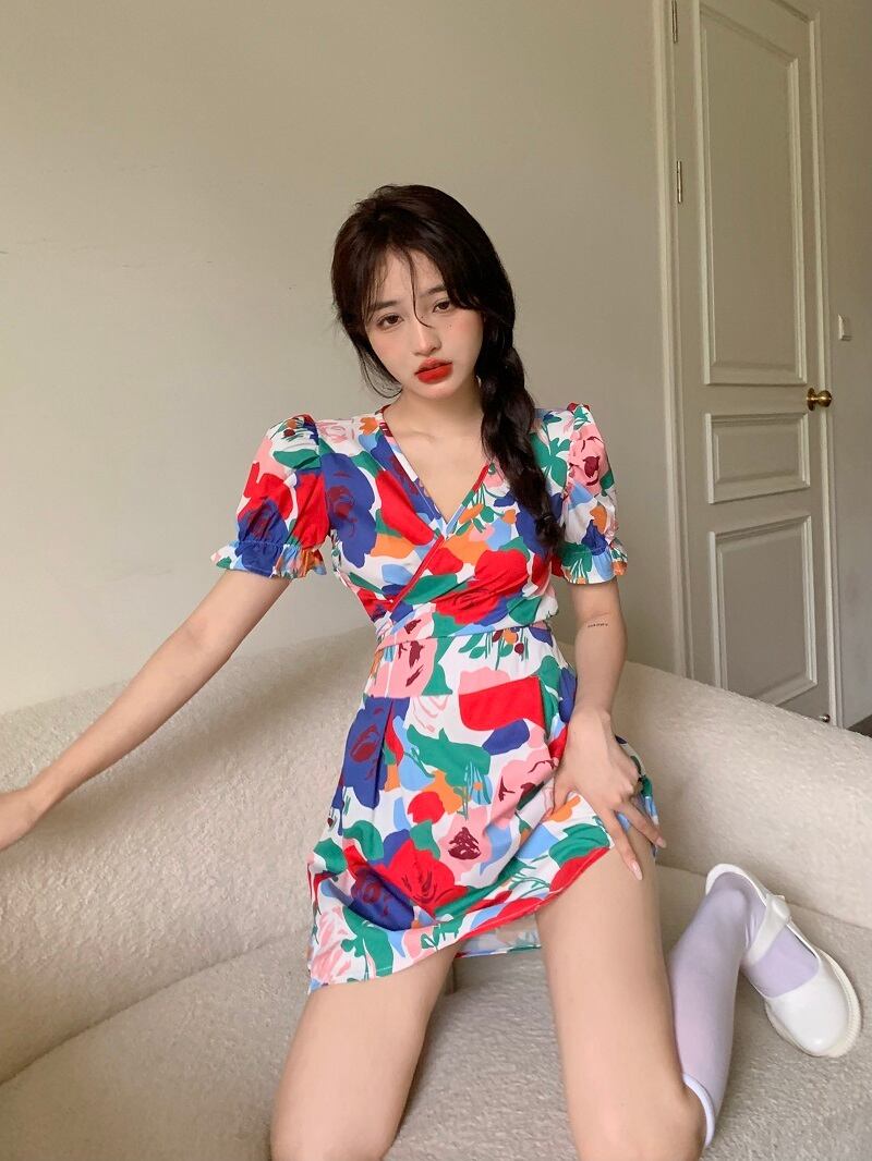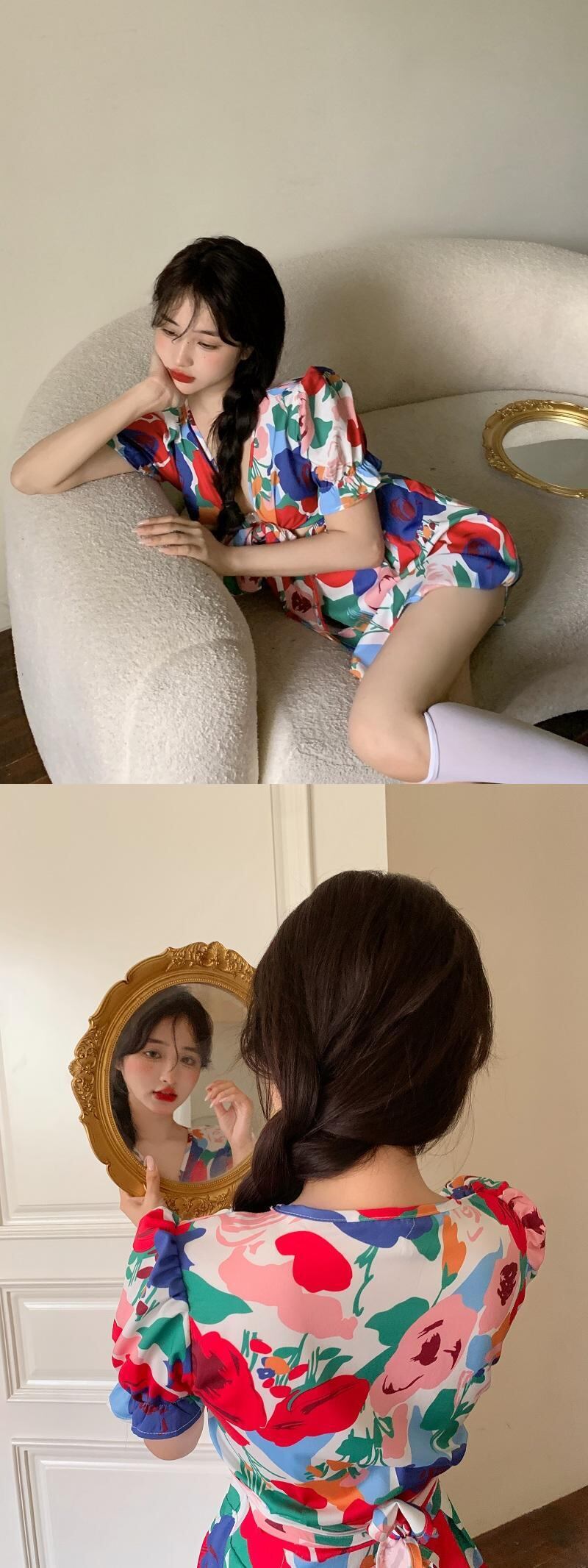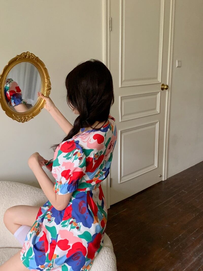 フローラルドレス スリーブウェストショートスカート サマー 夏物 花柄 ブラックストロベリース92418304264