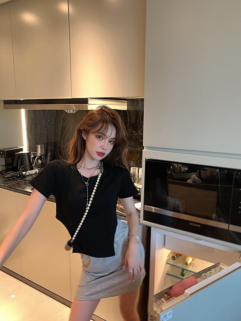 Tシャツ シャツ サマーショートスタイルスリムトップス 大人ガーリー スウィート キュート カジュアル 夏物 ブラックストロベリース94051006723