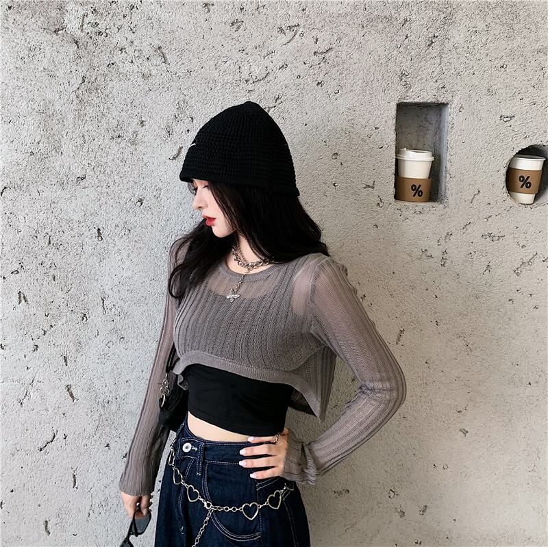 ニットセーター 薄手ショートブラウス サマーホワイトトップス ロング 夏物 シルク ブラックストロベリース58352974998