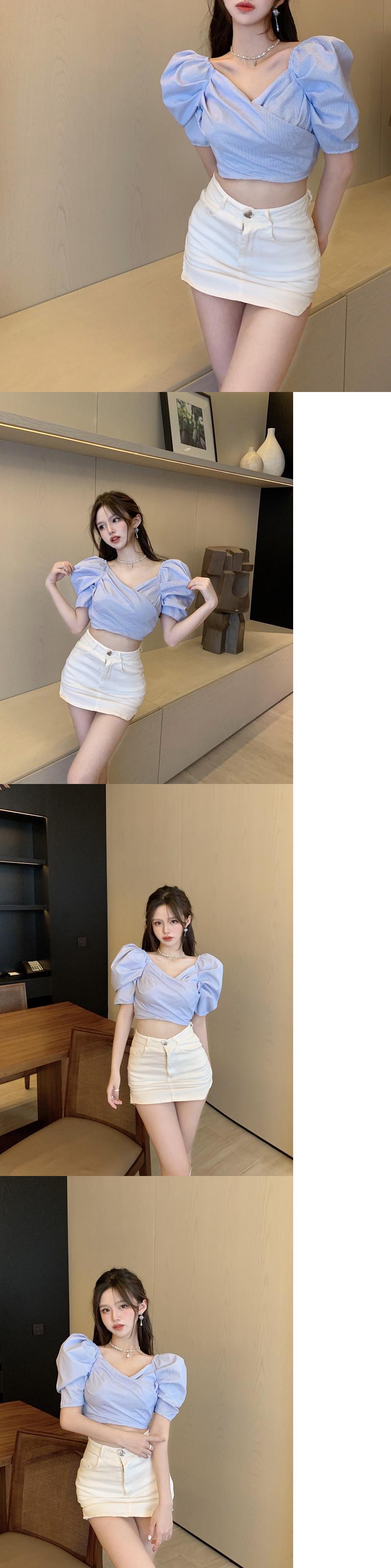 スリーブカラーシャツ サマーショート半袖トップス ハーフスリーブ 大人ガーリー スウィート キュート カジュアル 夏物 スクウェア ブラックストロベリース27214084