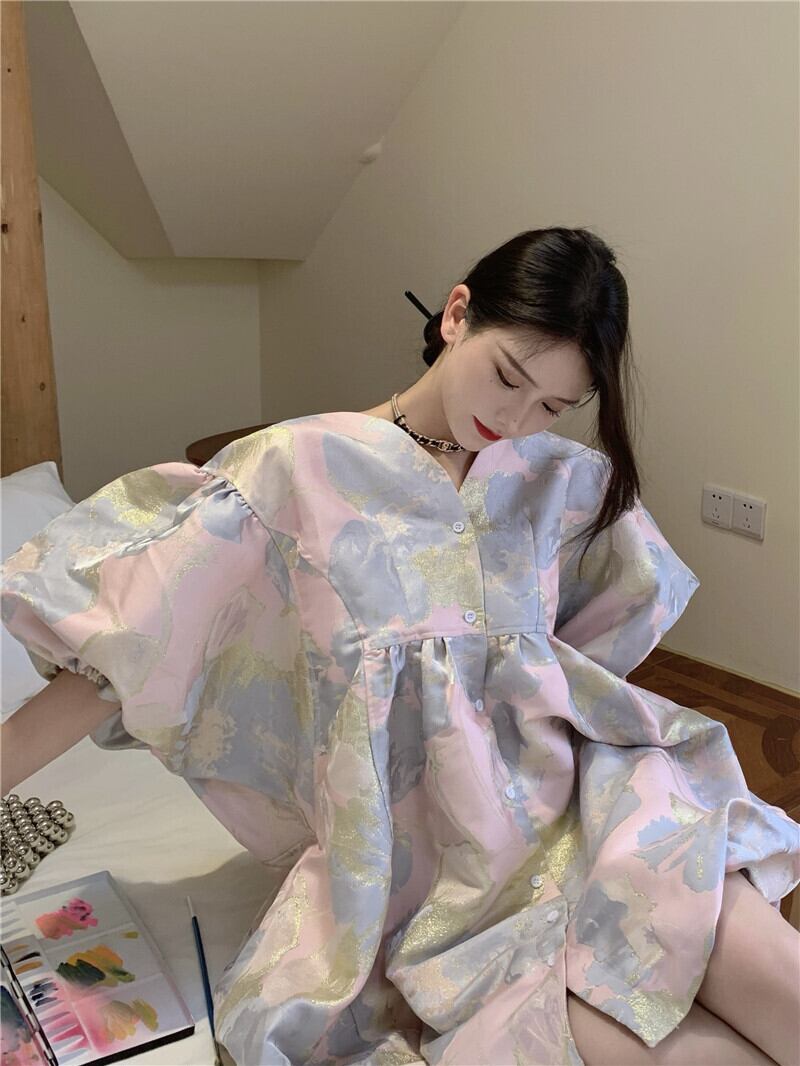 スタンダードフローラルドレス サマースカート レトロ 大人ガーリー スウィート キュート カジュアル ふわふわ 夏物 花柄 ブラックストロベリース74248579555
