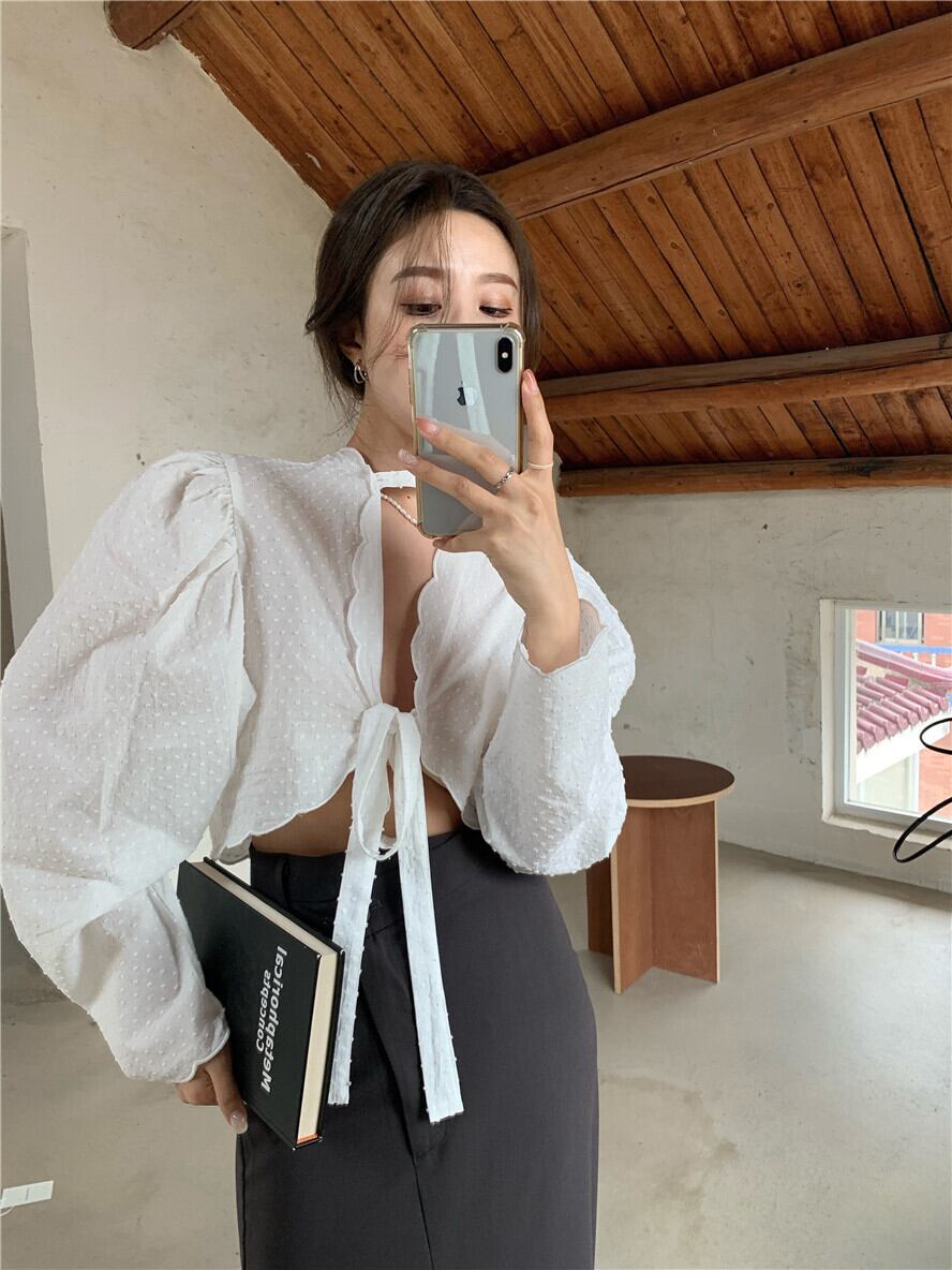 バンドシャツ レディースサマー薄手ショートホワイト ロング 夏物 ブラックストロベリース15823166812