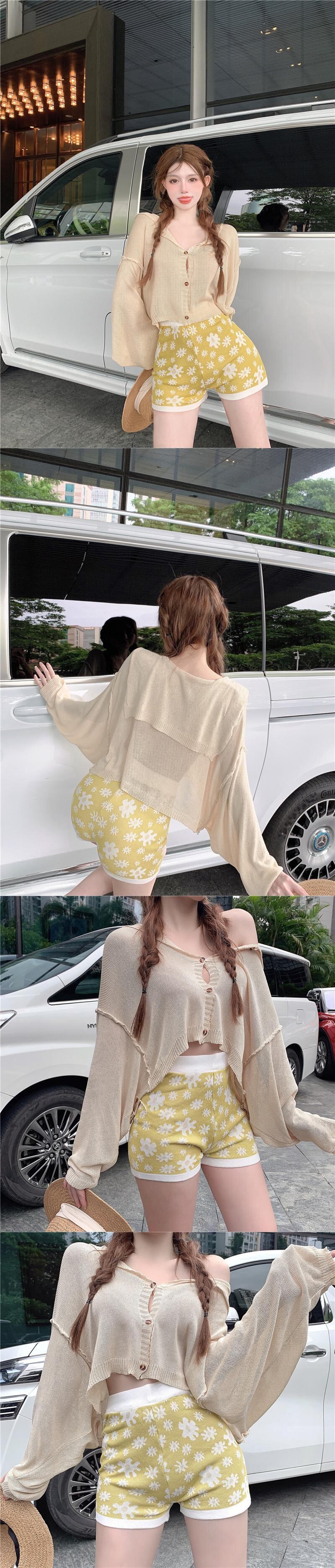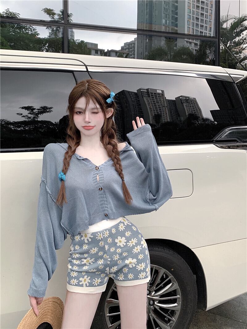 ヤーンニットカーディガンワイドレッグショーツ セット サマー ストリート 大人ガーリー スウィート キュート カジュアル 夏物 ブルマー ワイドパンツ ブラックストロベリース50878100196