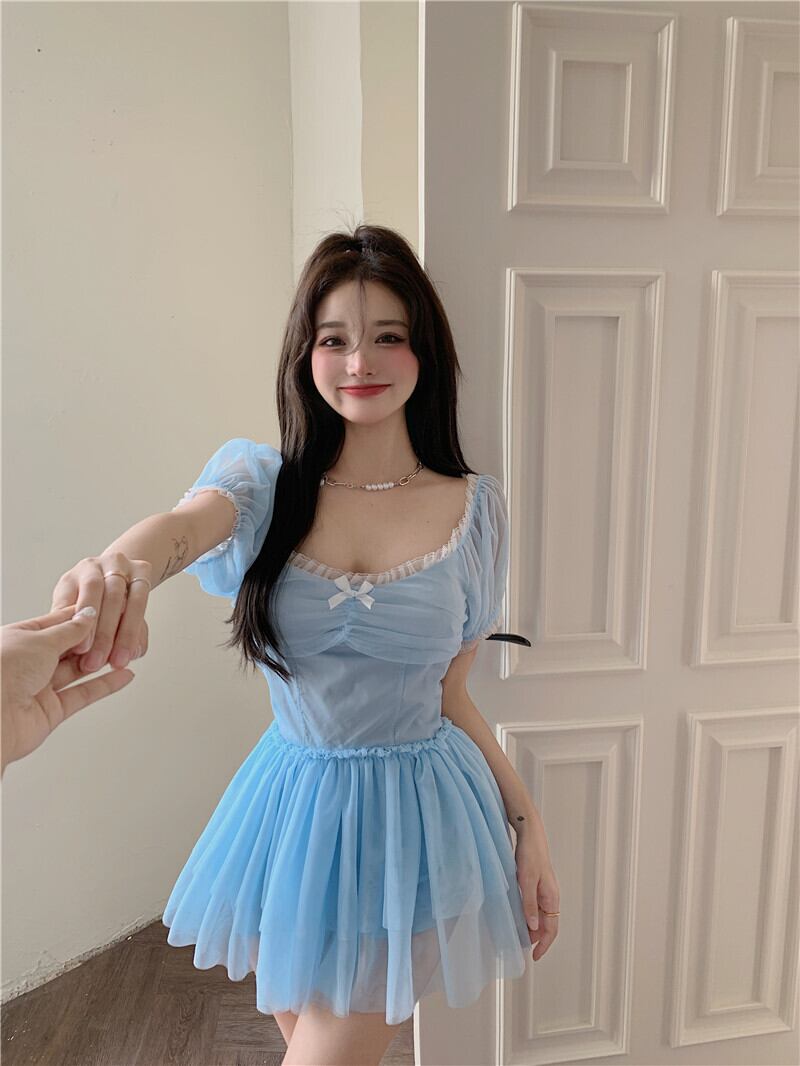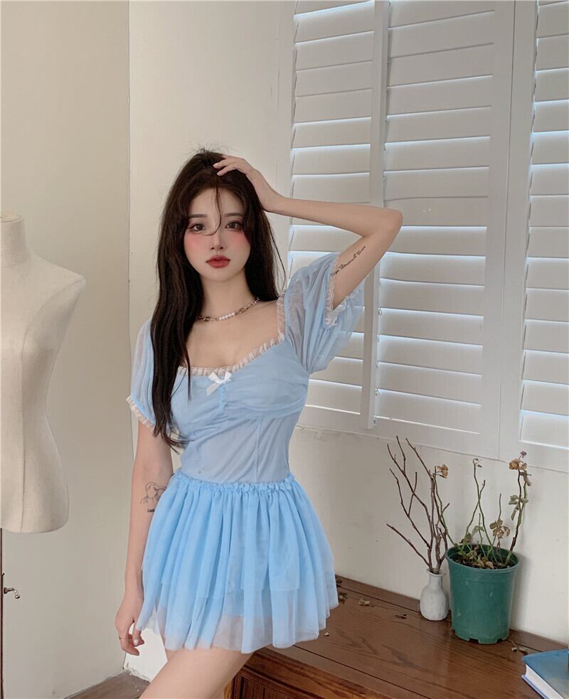 メッシュドレス サマーショートスカート ウェストスリム 大人ガーリー スウィート キュート カジュアル 夏物 スクウェア ブラックストロベリース73209474289