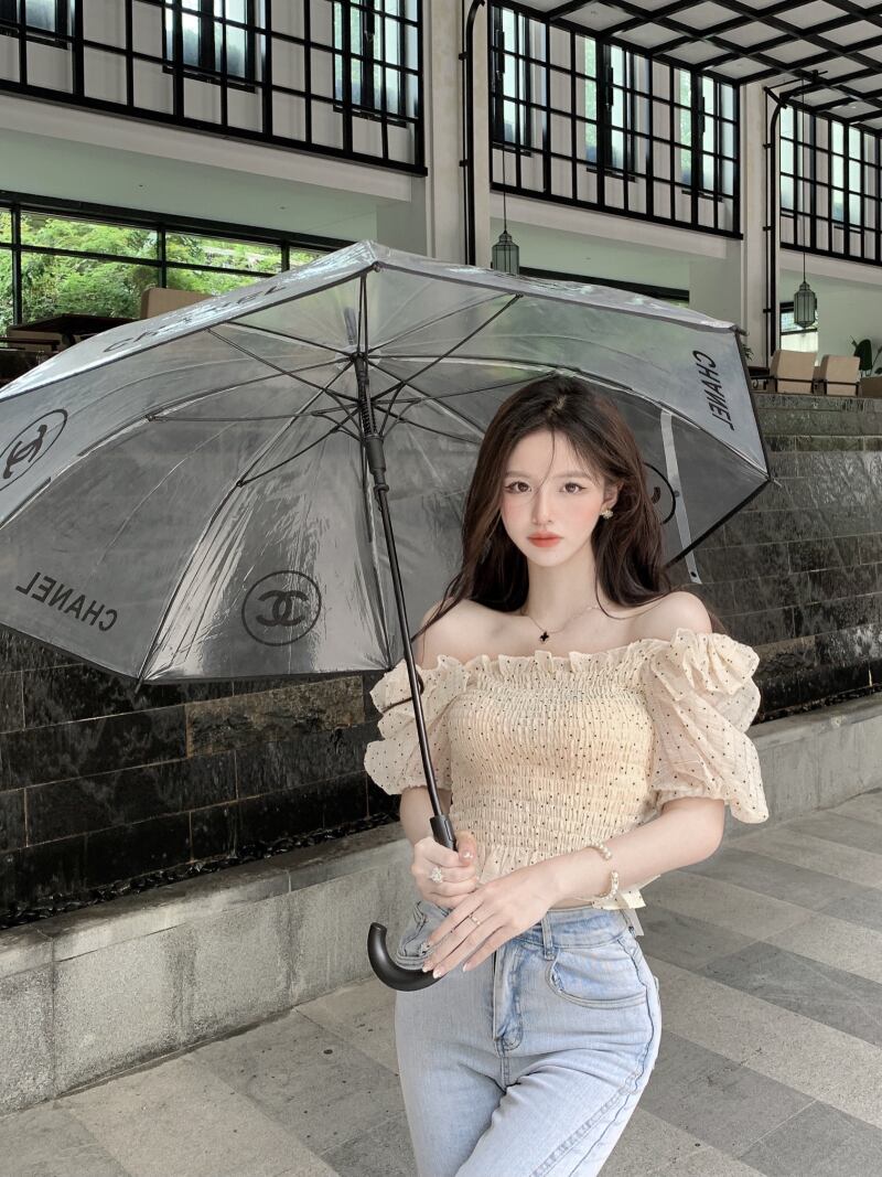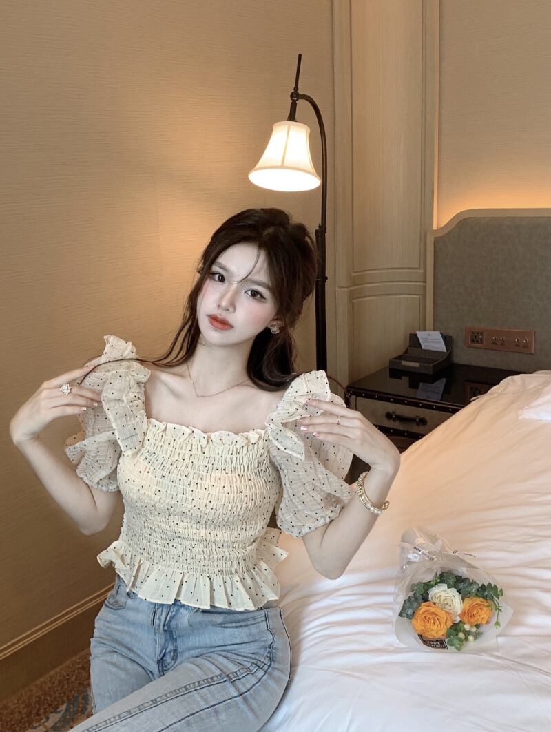 水玉シフォンシャツ サマーショートトップス 夏物 ブラックストロベリース12442021203