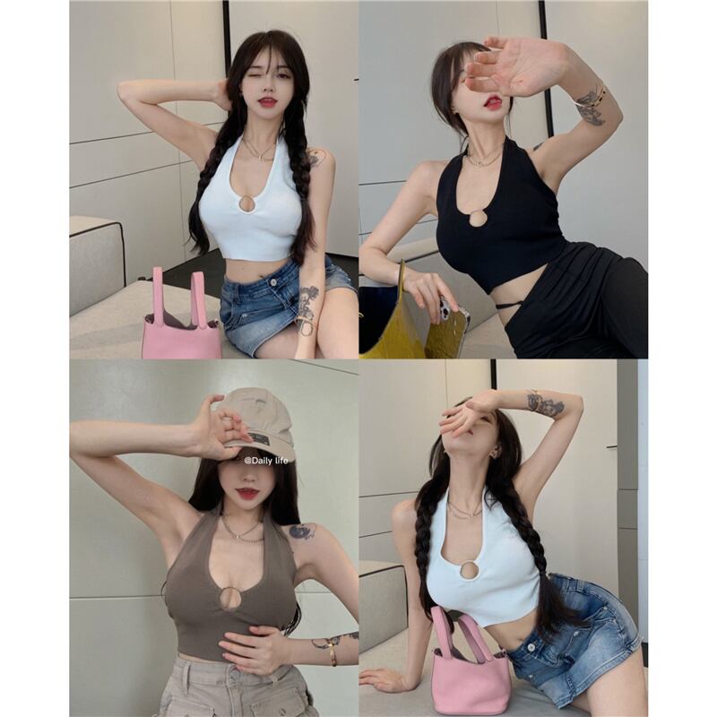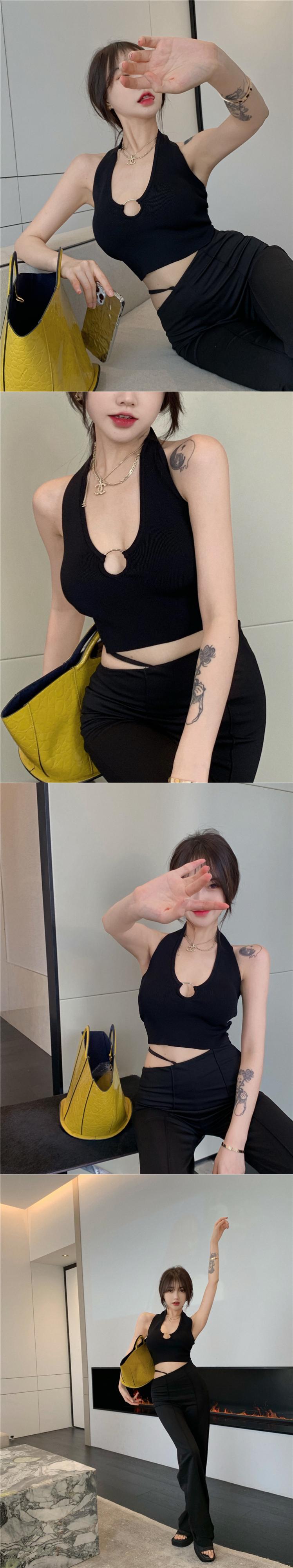 サマーショートホワイトホルタートップス 大人ガーリー スウィート キュート カジュアル 夏物 ピュア ヨーロピアン ブラックストロベリース20147888016