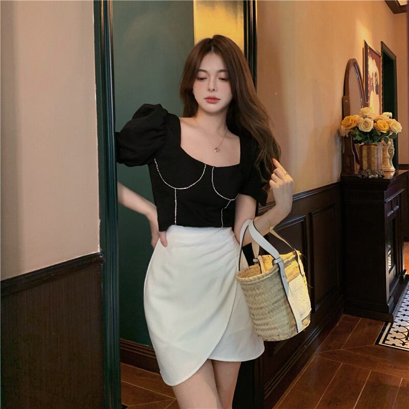 スリーブシャツ サマーショートブラック半袖トップス ハーフスリーブ 夏物 スクウェア ブラックストロベリース2238912597
