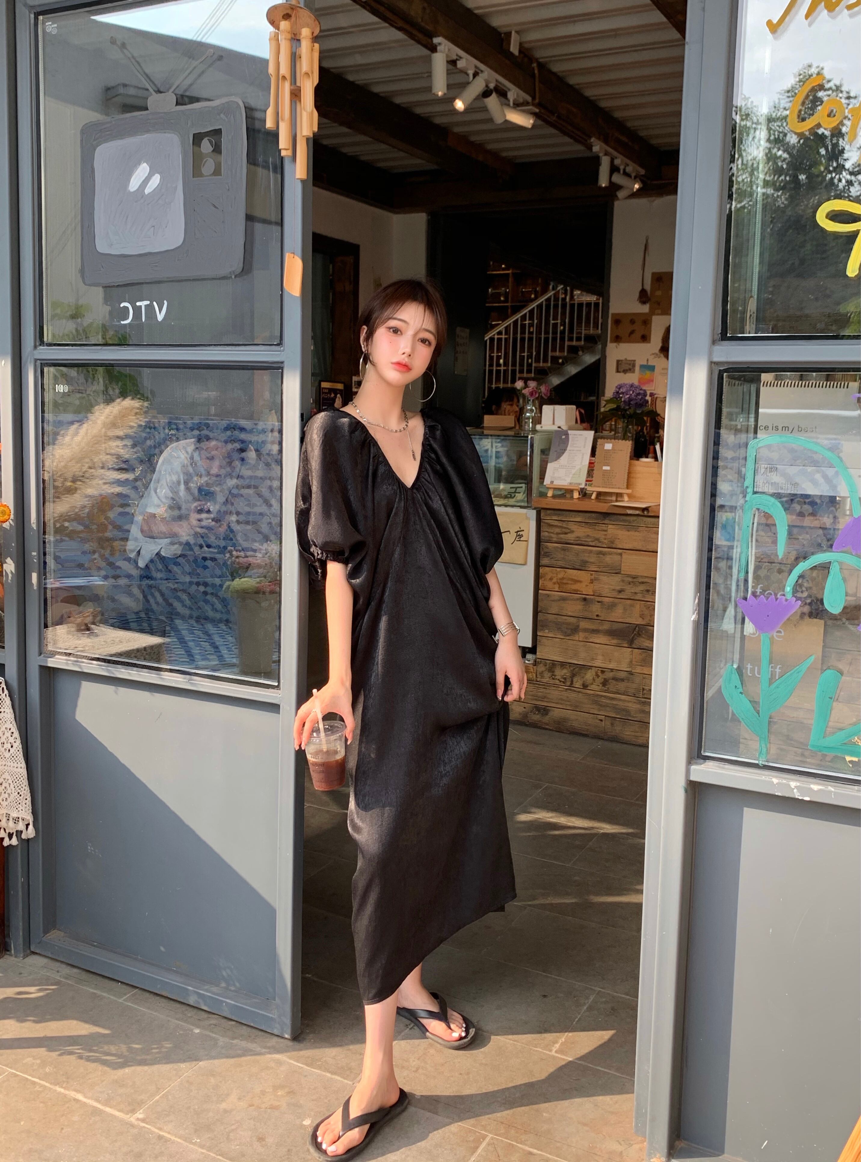 カジュアルルーズドレス レディースサマー薄手スカート ウェスト 夏物 ブラックストロベリース23071720484
