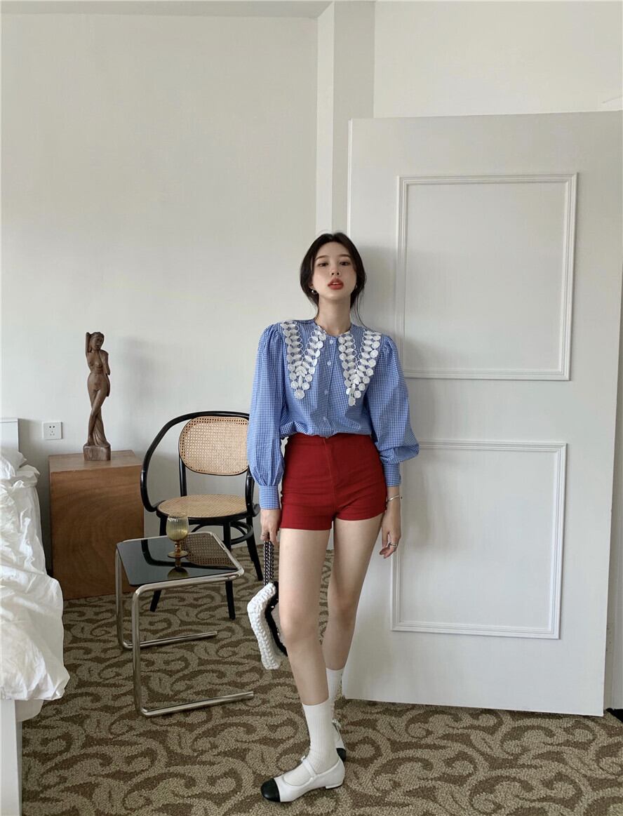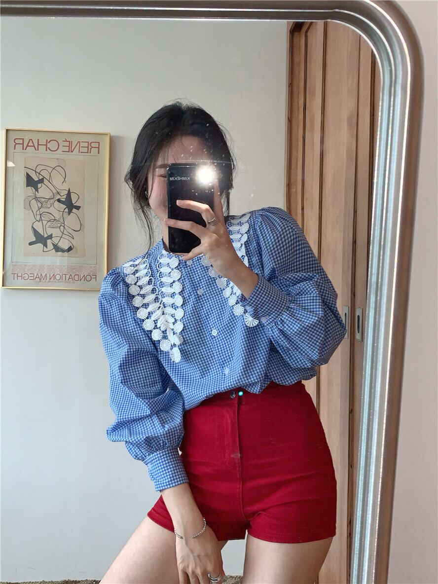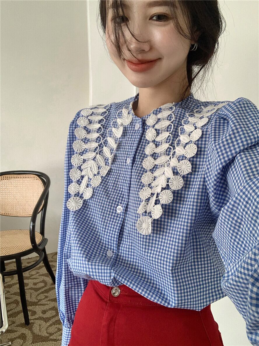格子柄シャツ カラーサマー薄手ブルートップス ロング 夏物 ブラックストロベリース3165229942