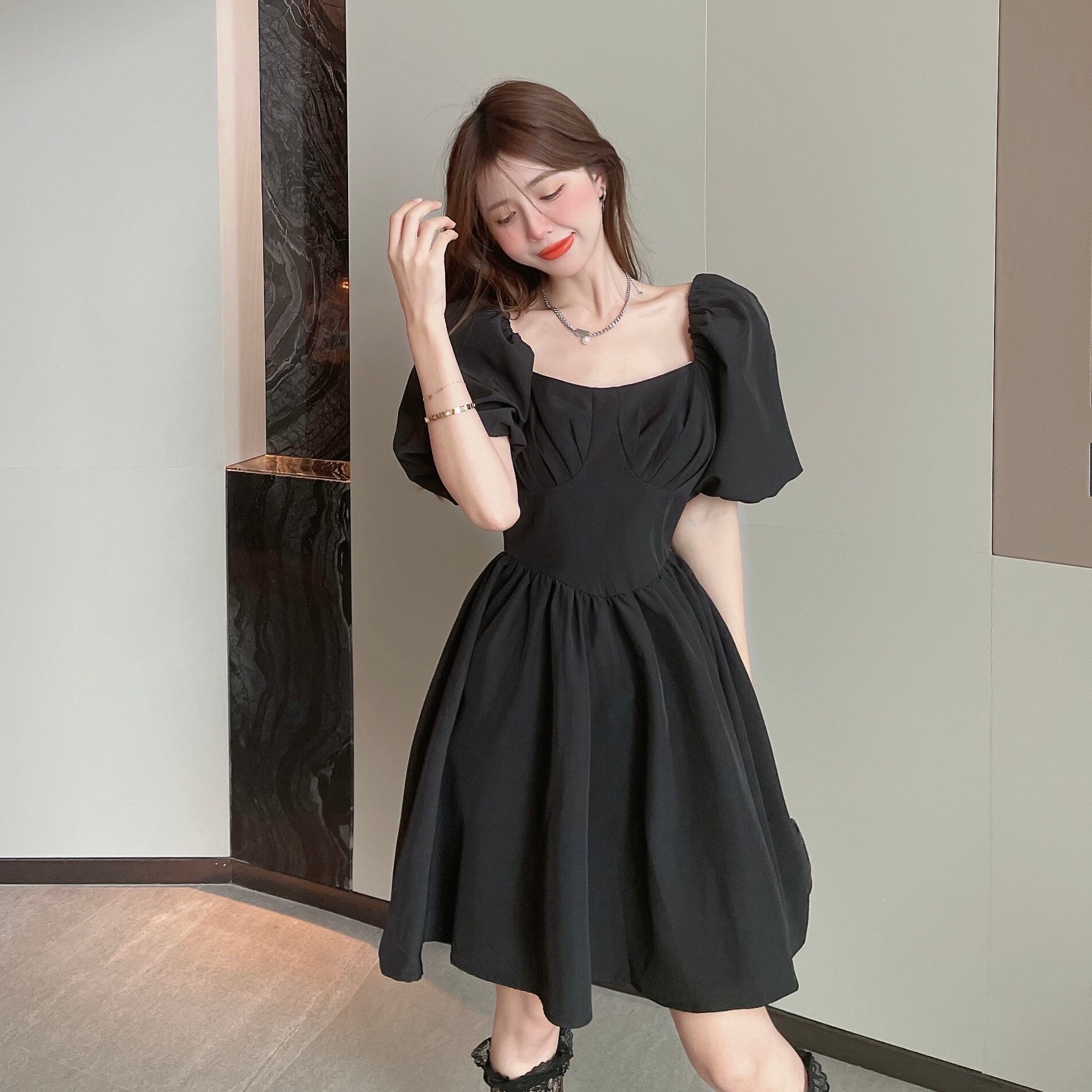 スリーブドレス サマーショートスカート ウェスト ふわふわ 夏物 ブラックストロベリース32313955080