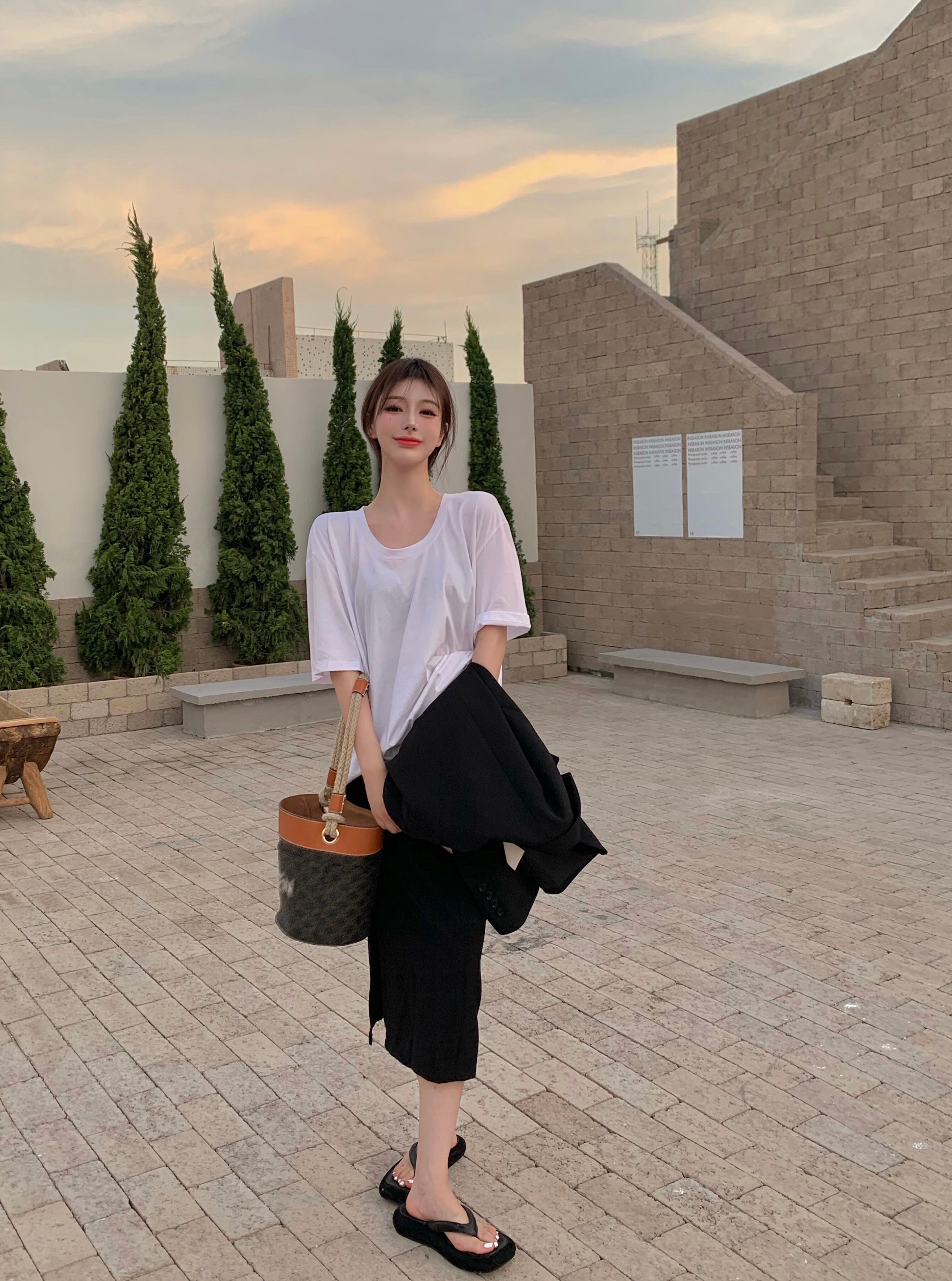 Tシャツ スタイルルーズ薄手ブラックトップス サマー 夏物 ブラックストロベリース63657621863