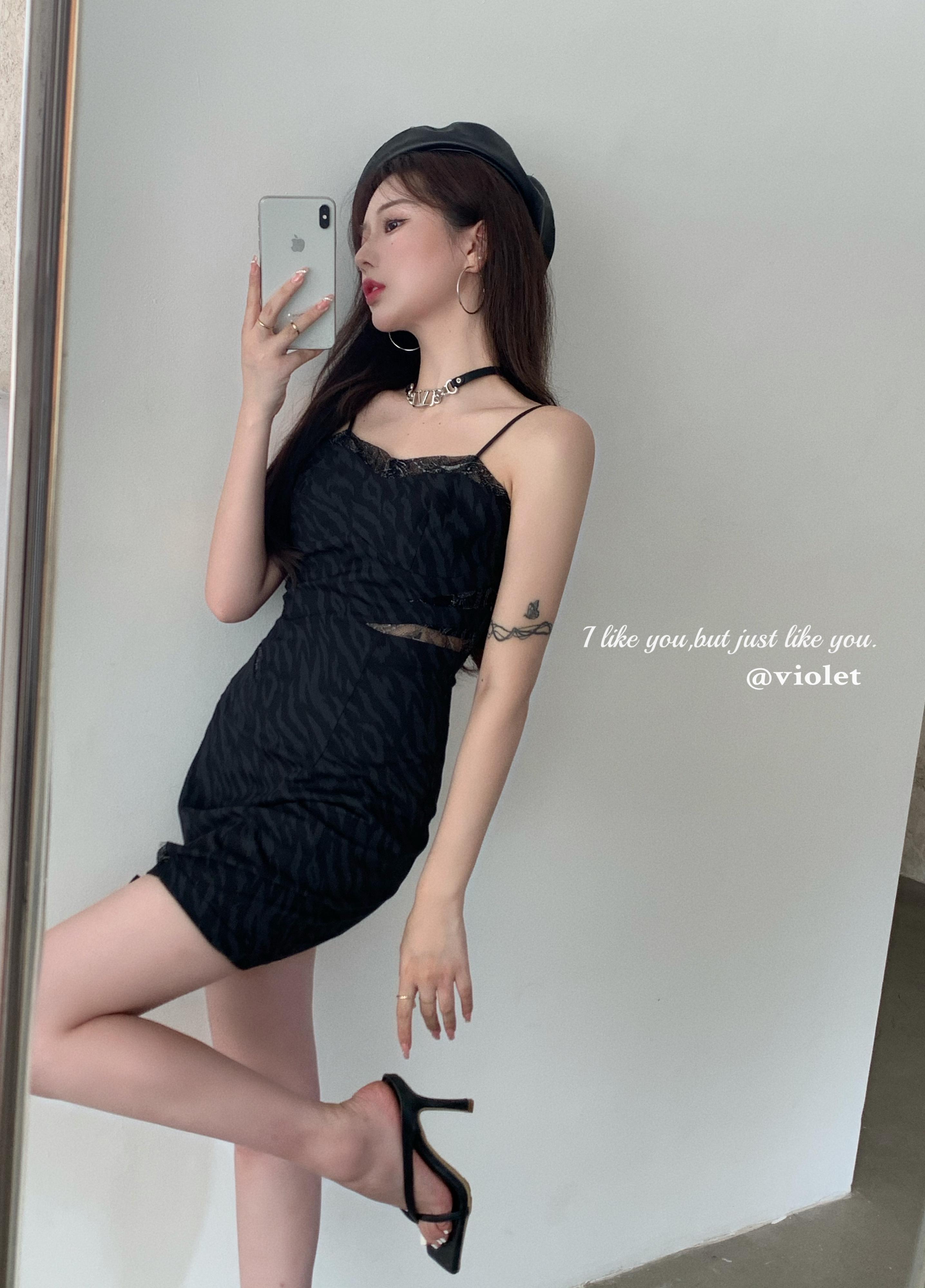 レースレオパードプリント柄ドレス サマーショートスカート ウェスト 大人ガーリー スウィート キュート カジュアル 夏物 ブラックストロベリース98042870862