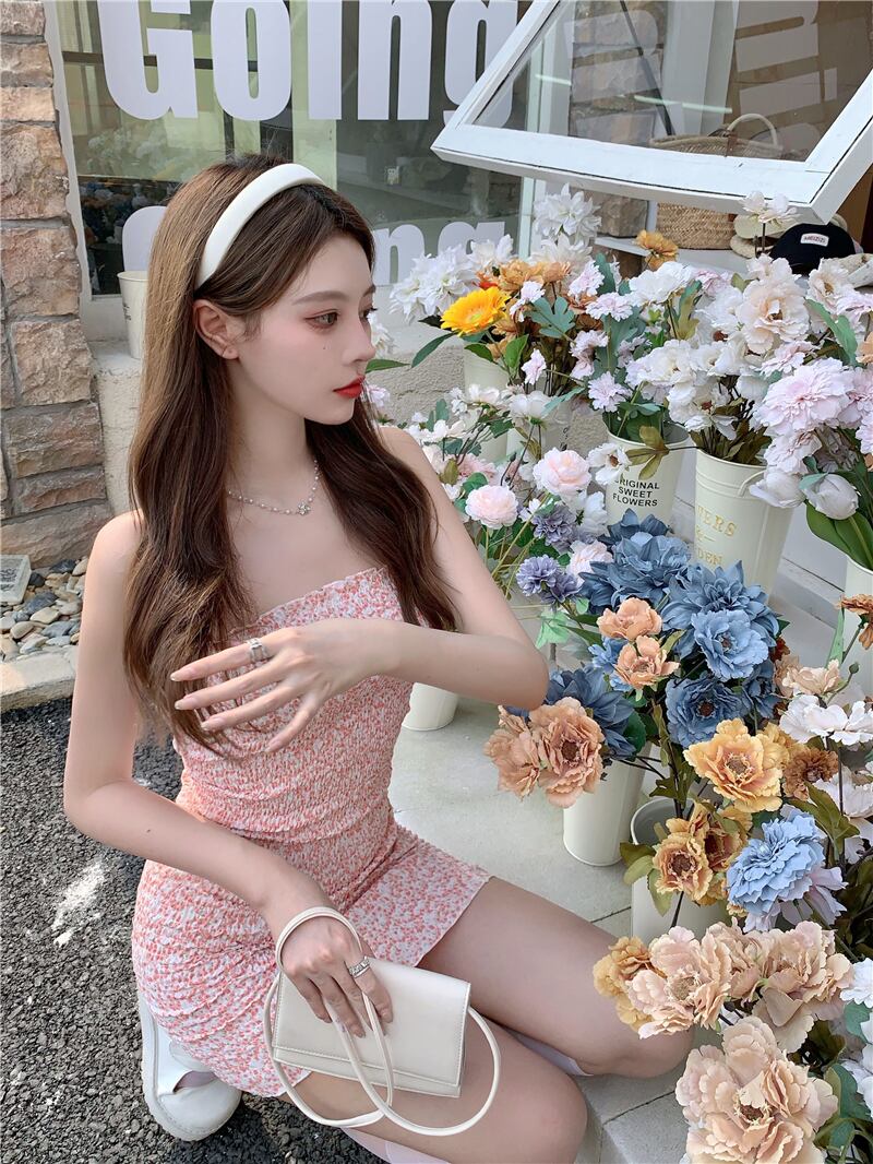 フローラルトップス ドレス ショートスカート サマー ピンク 大人ガーリー スウィート キュート カジュアル 夏物 花柄 ピュア ブラックストロベリース22337152663
