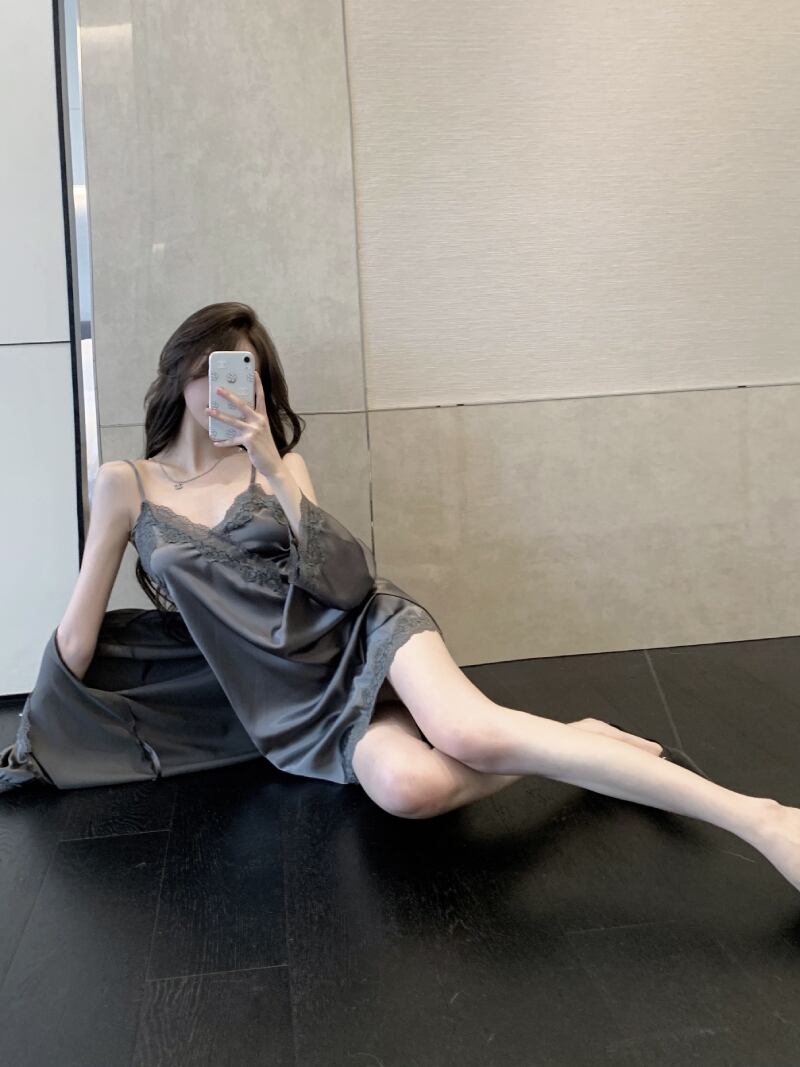 レースレディースオータム薄手サテンドレス 秋物 ブラックストロベリース81970351091