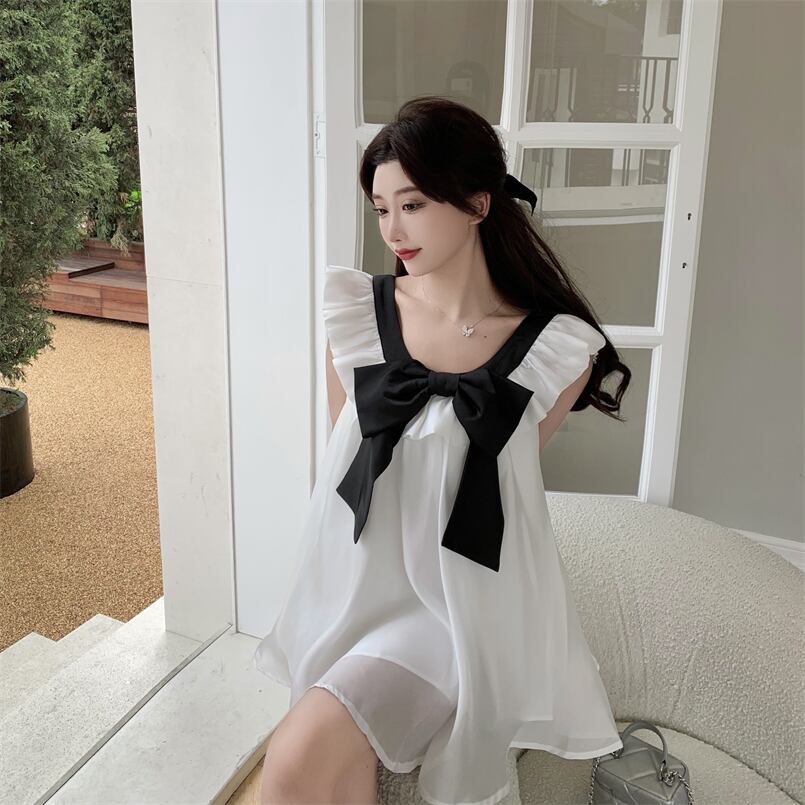 リボンドレス サマーショートスカート ホワイト 大人ガーリー スウィート キュート カジュアル 夏物 ピュア ブラックストロベリース20699226608