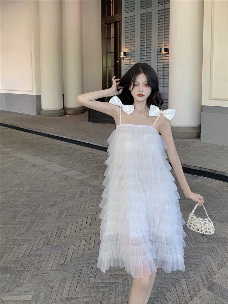 ドレス ホワイトリボンショートスカート サマー 夏物 ブラックストロベリース53725642640