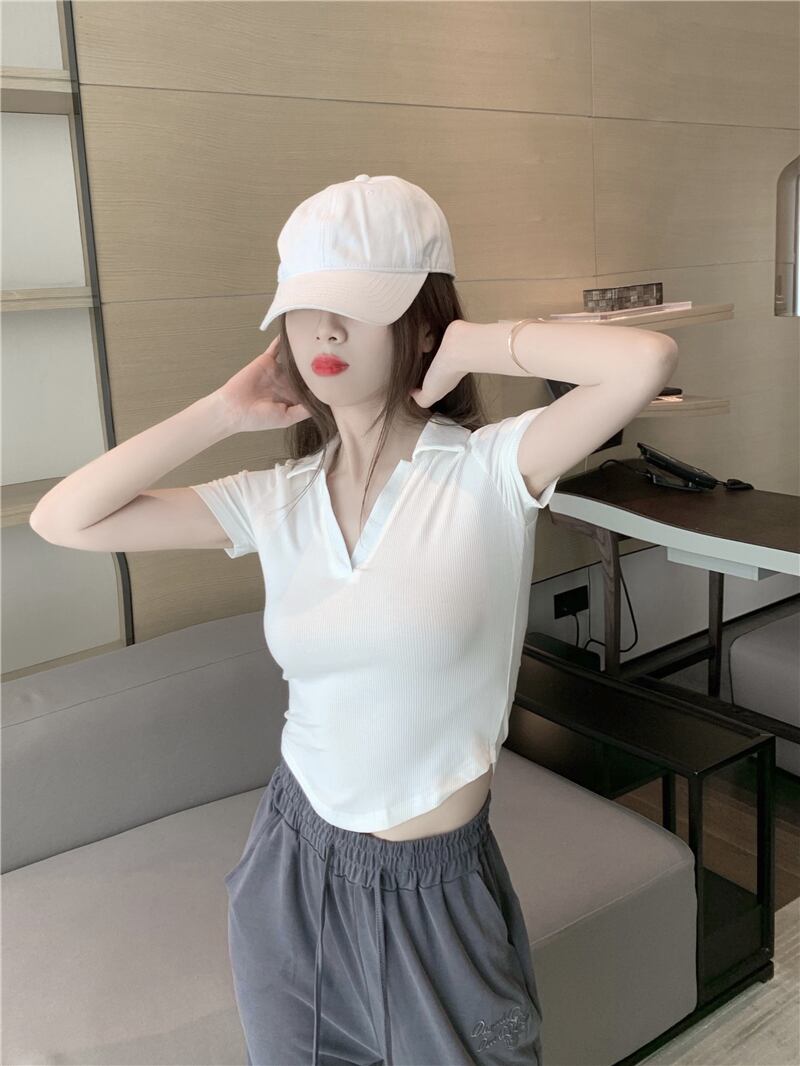 カラーTシャツ サマー薄手ショートスリムトップス 夏物 ブラックストロベリース58709667751