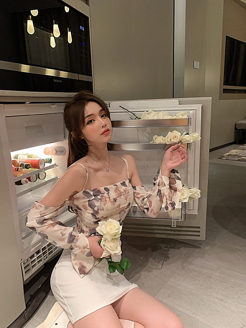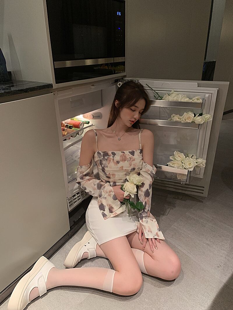 フローラルTシャツ サマーショートスリムトップス ロング 夏物 花柄 ブラックストロベリース97745986917