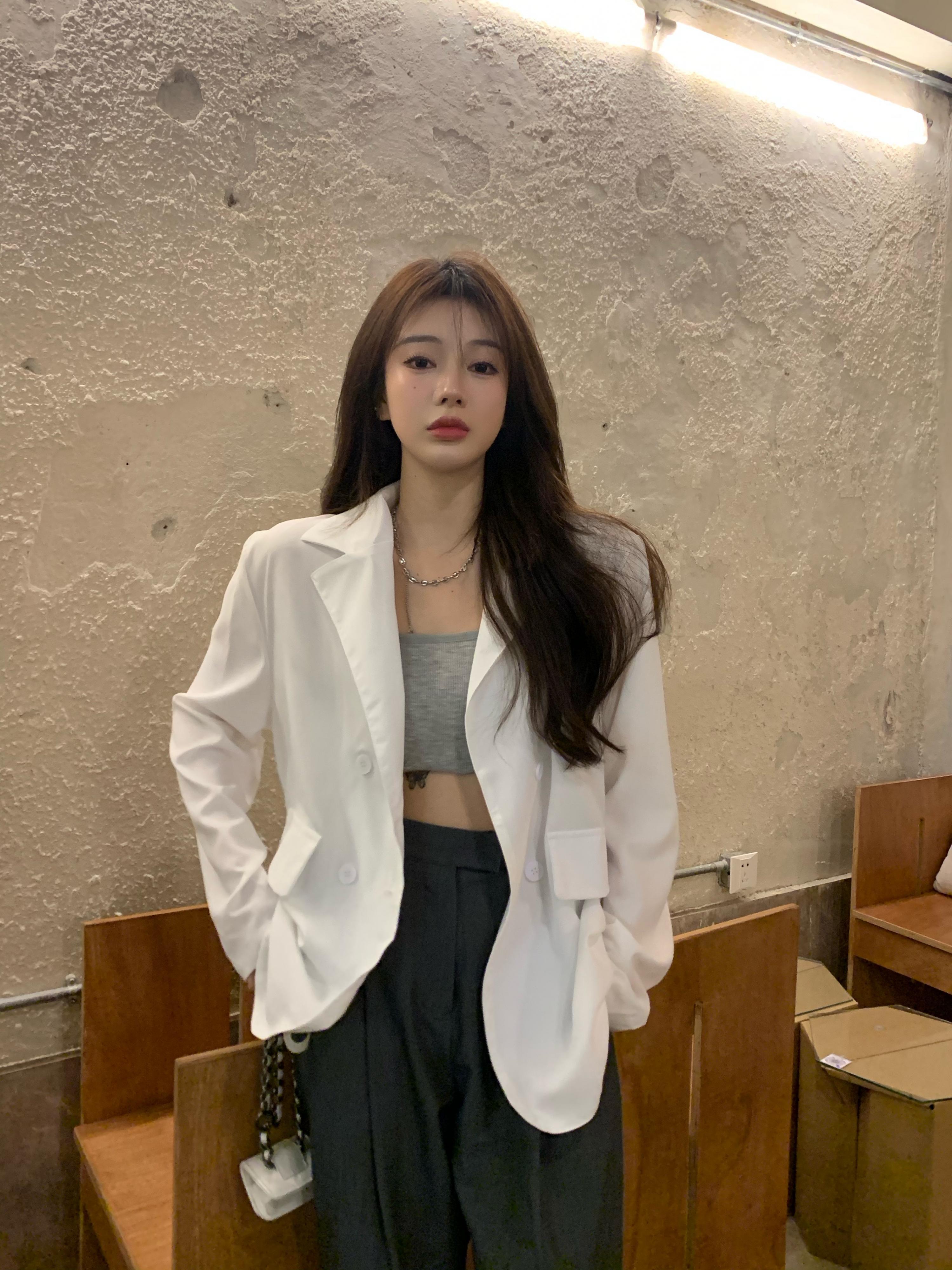 ルーズカジュアルジャケット サマー薄手シャツ ロング ストリート 夏物 ブラックストロベリース114599638