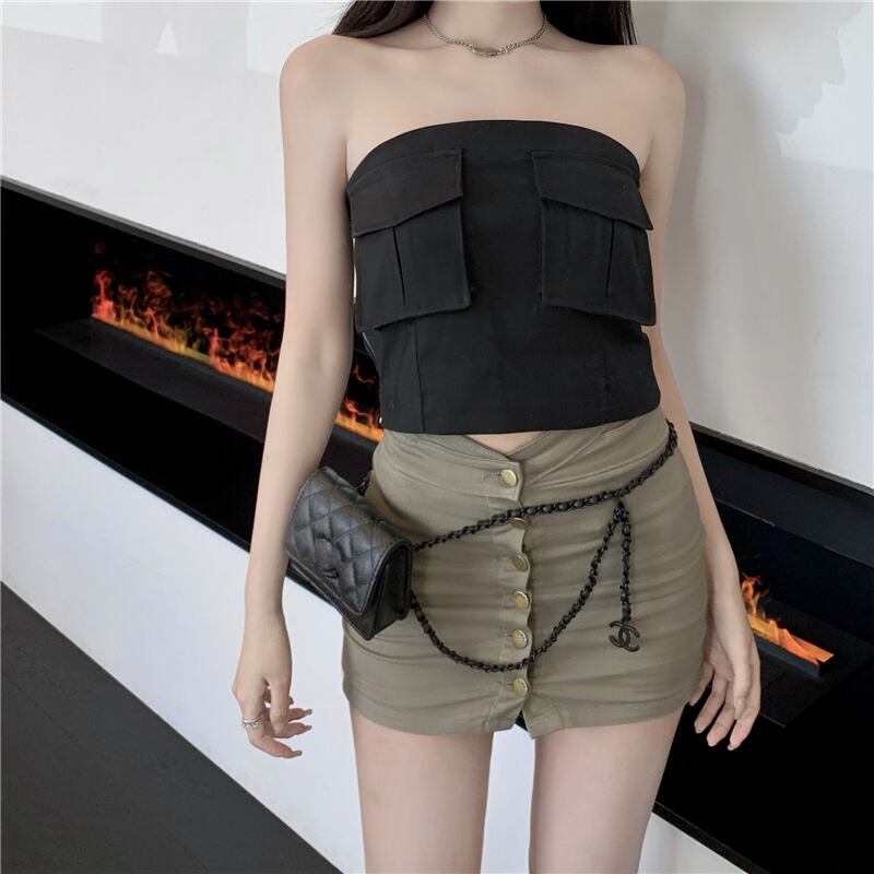 スカート ハイウェストウェストショートサマーグリーン 夏物 ピュア ブラックストロベリース43563762881