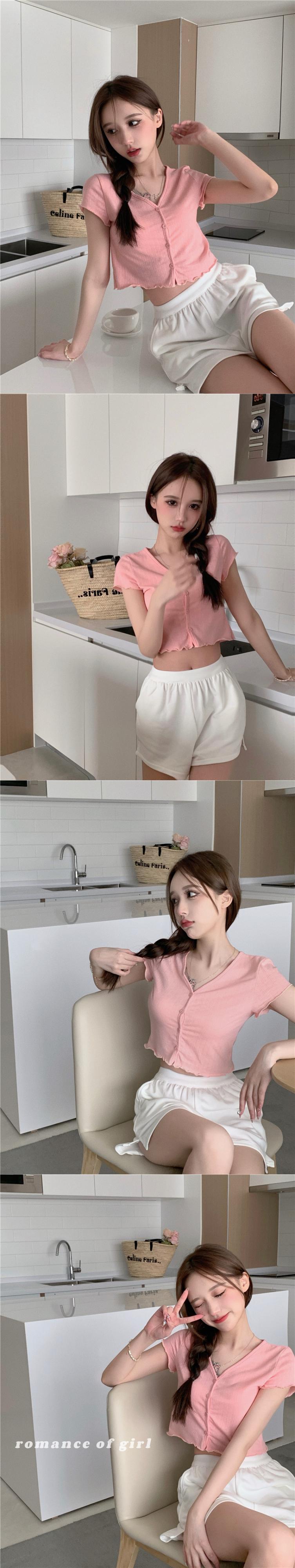 色:白いTシャツ,ピンクのTシャツ,黒いTシャツ,グレーのショートパンツ,黄色のショートパンツ,ホワイトショーツ