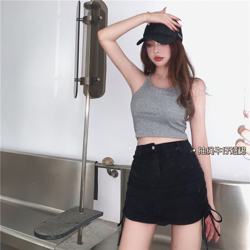スカート ハイウェストウェスト薄手ショートサマーギャザーAライン 夏物 ブラックストロベリース41269955080