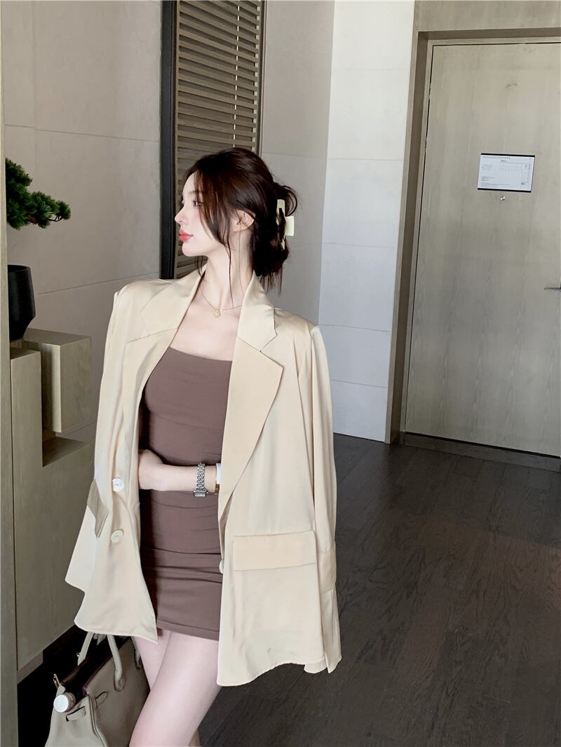 色:シャンパンイエローのスーツ,氷のような白いスーツ,茶色のスカート,グレースカート