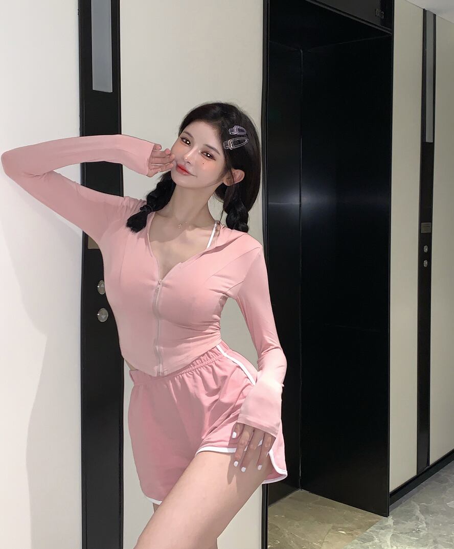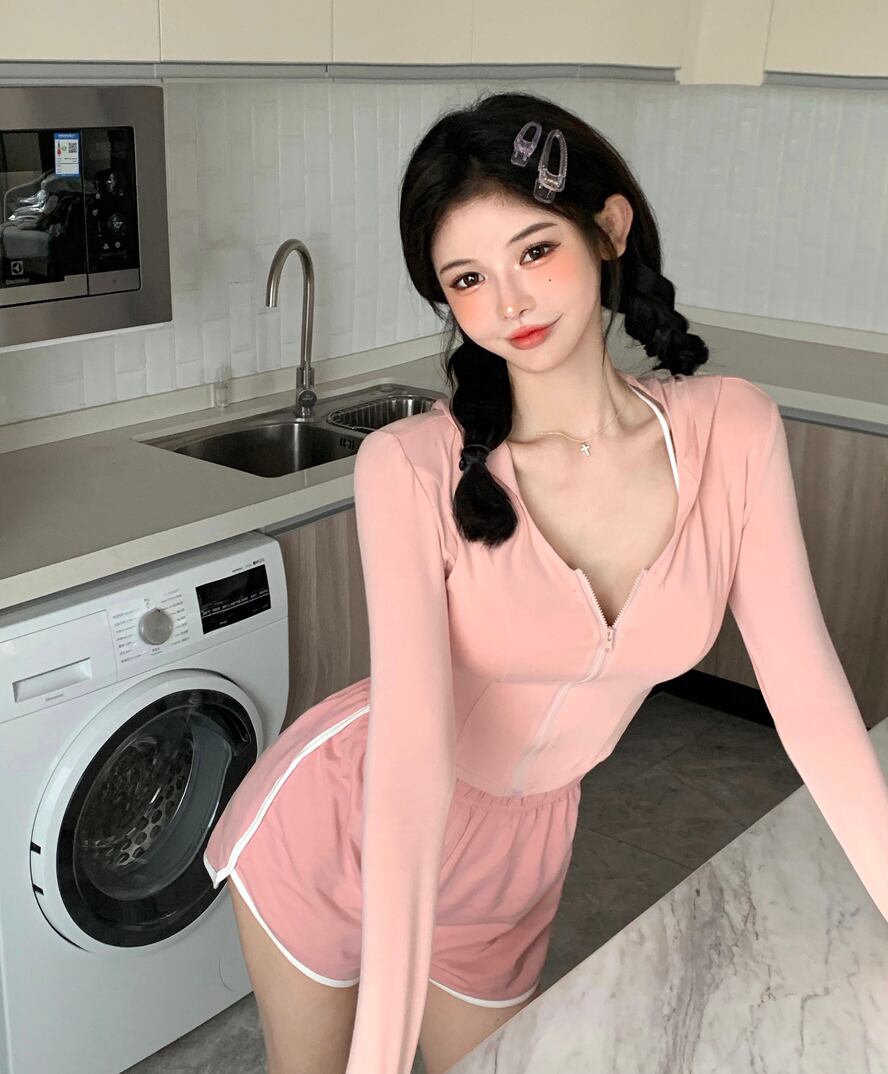 Tシャツ シャツ サマーショートジッパーフードトップス ピンク 夏物 ブラックストロベリース15939113333