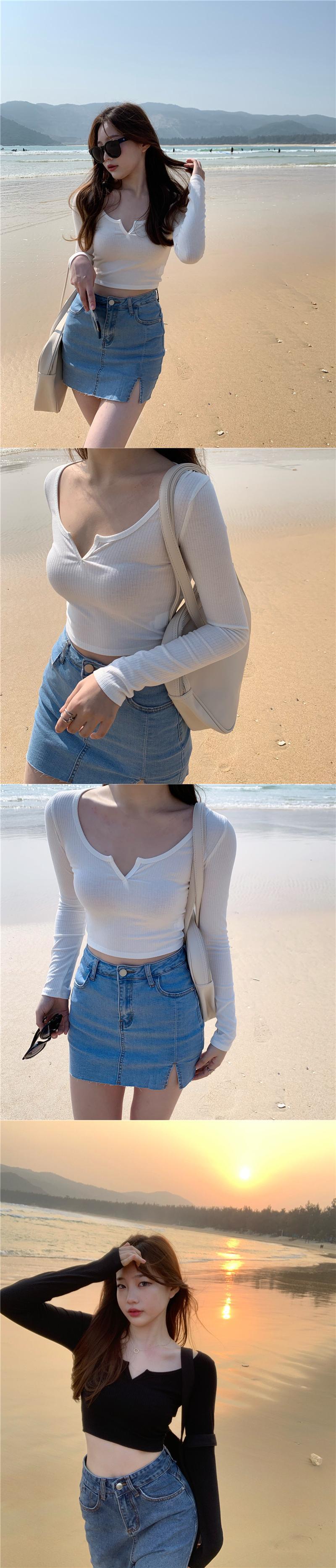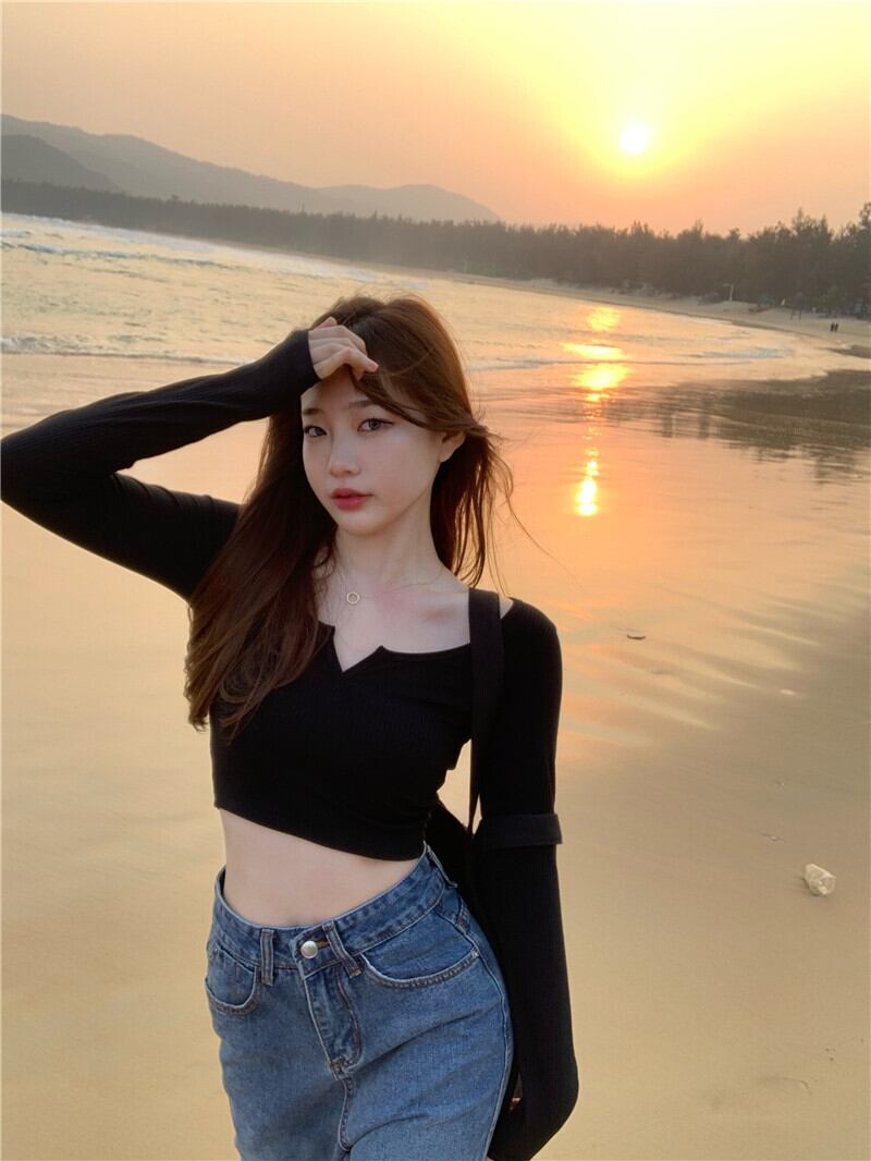 Tシャツ ショートスタイルブラックトップス オータム ロング 秋物 ピュア ブラックストロベリース70457537587