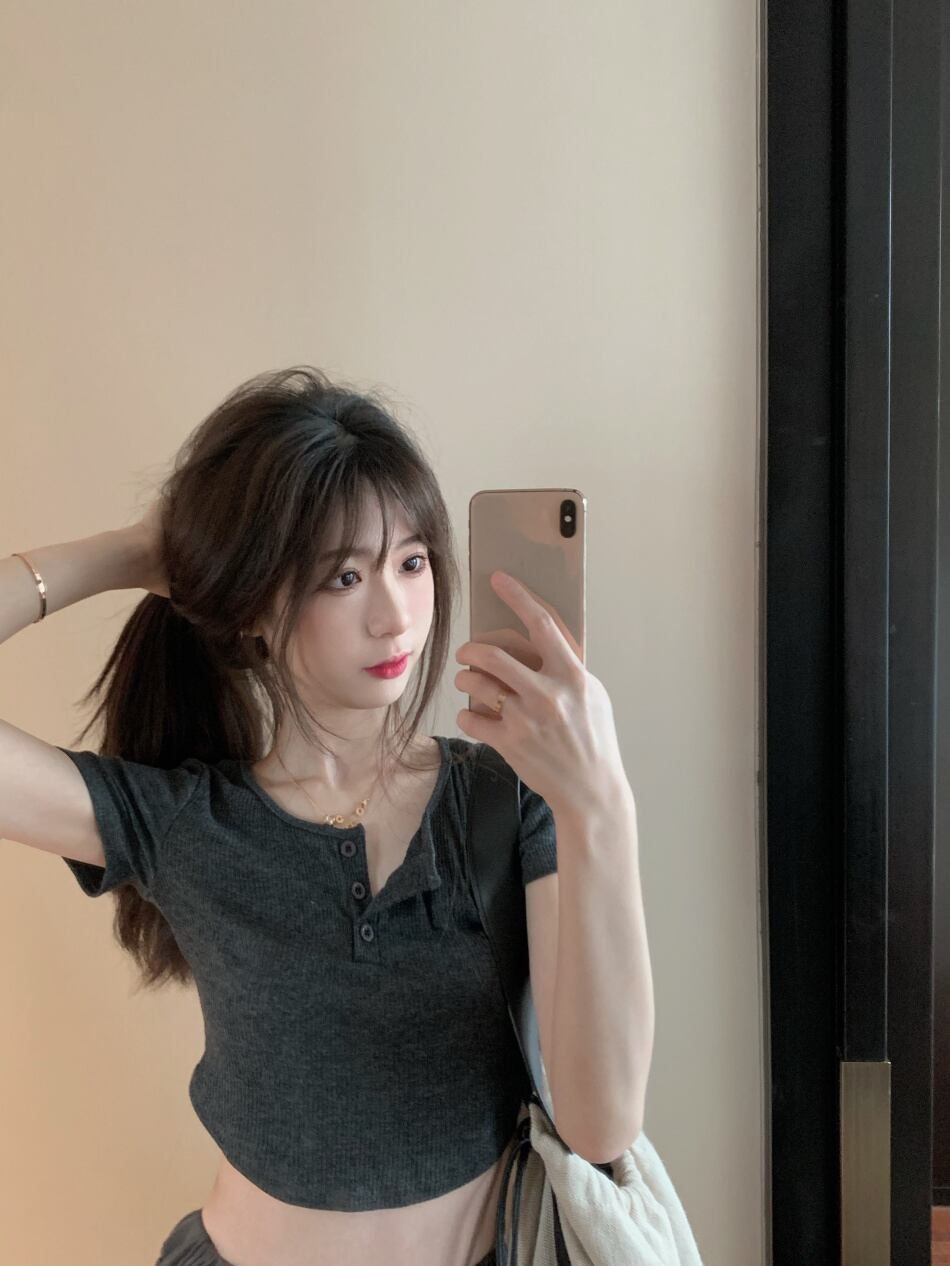 Tシャツ サマーレッドショートトップス 夏物 ピュア ブラックストロベリース44658314241