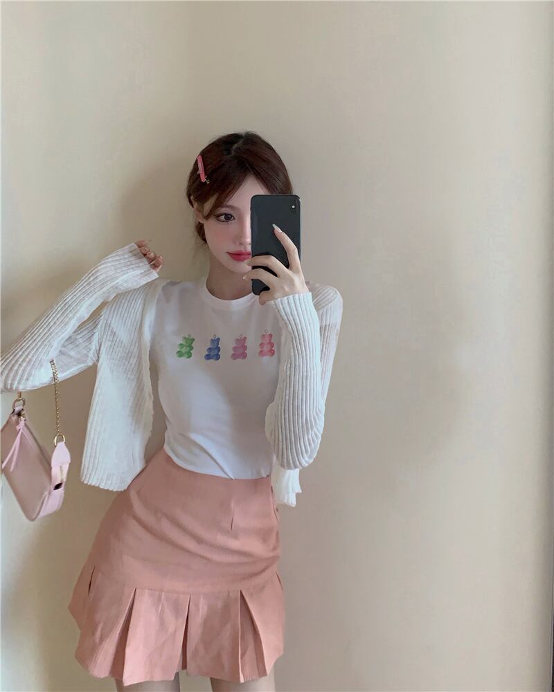 Tシャツ ショートトップス サマー ピンク 大人ガーリー スウィート キュート カジュアル 夏物 ピュア ブラックストロベリース35085759013