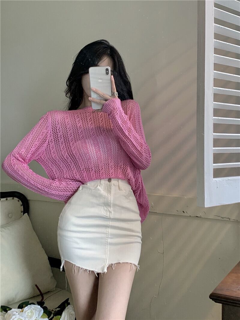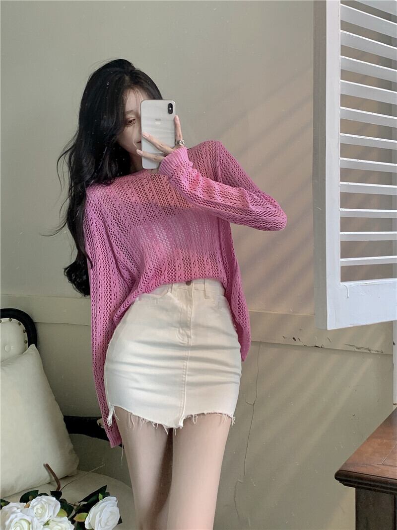 ニットセーター レディースルーズバックリボンブラウス オータムトップス ロング ピンク 秋物 ブラックストロベリース18375275962