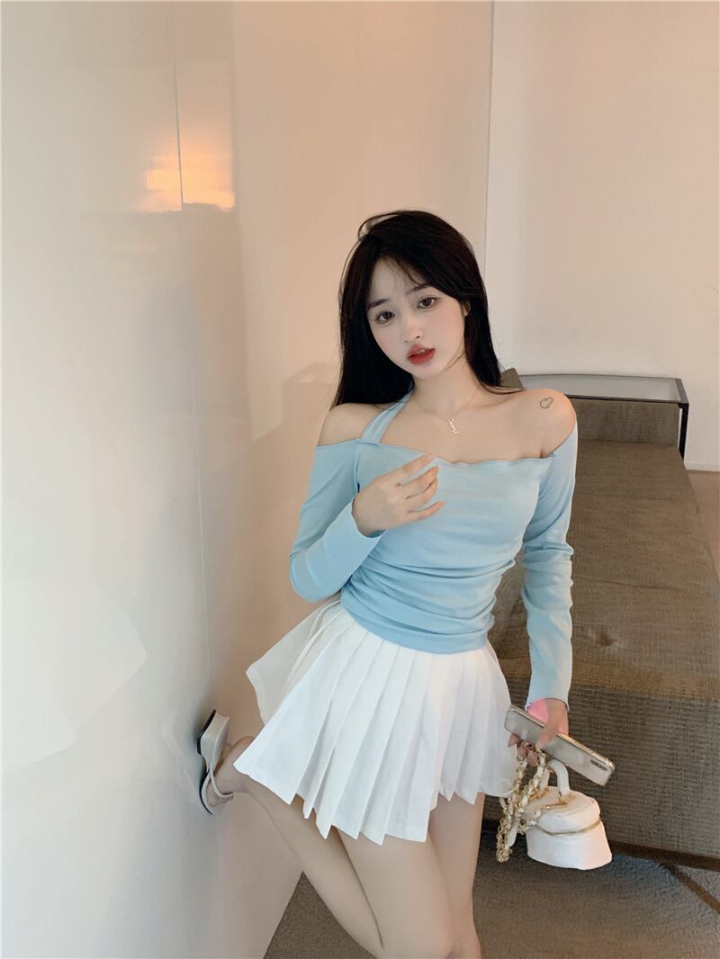 Tシャツ オータムショートスタイルトップス ロング 秋物 オフショルダー ピュア ブラックストロベリース65750979226