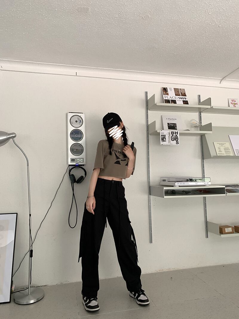スタンダードプリントショートTシャツ サマースリム薄手トップス レトロ ストリート 夏物 ヨーロピアン ブラックストロベリース2015427277
