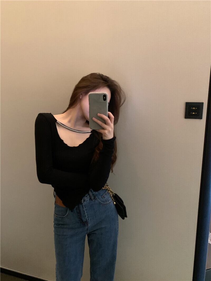 Tシャツ ブラックトップス オータム ロング 秋物 ブラックストロベリース75238742812