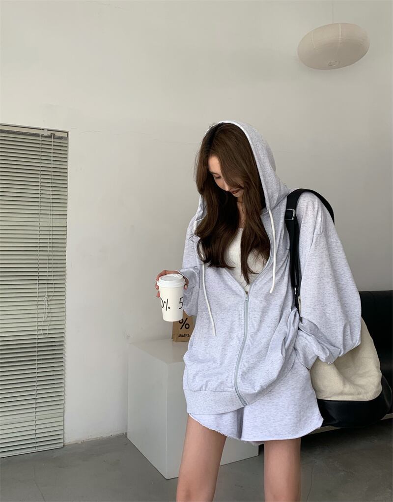セーター レディーススタイルルーズジッパーカーディガンジャケット オータムホワイト薄手フードトップス 秋物 ブラックストロベリース29518368851