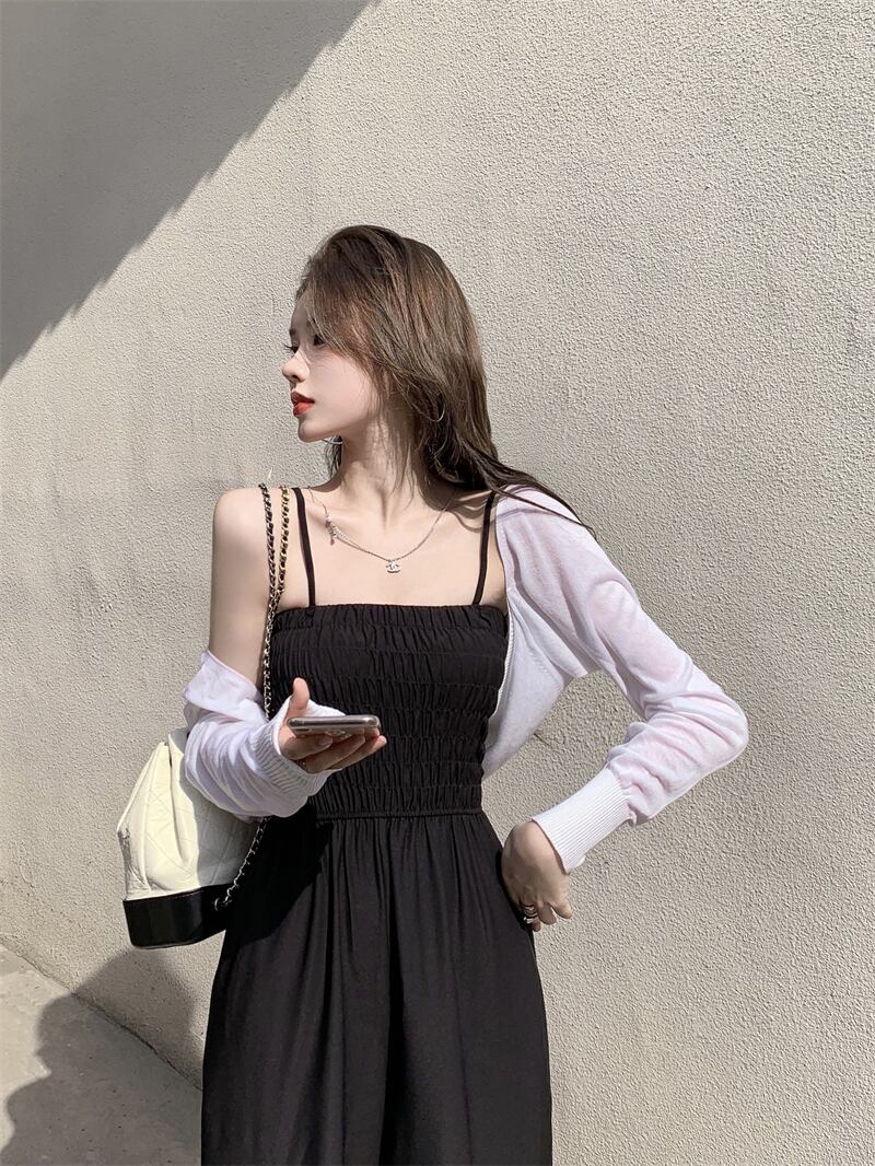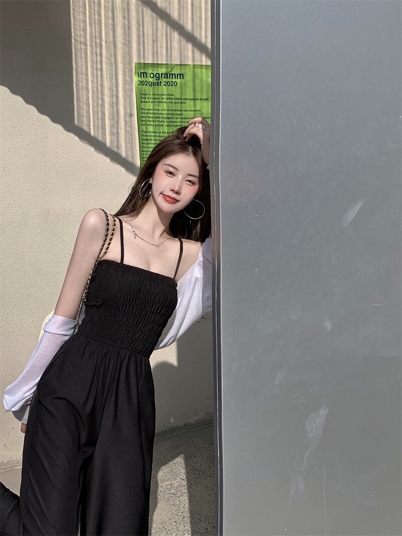 パンツ ブラックトップス サマー薄手ハイウェストウェストルーズワイドレッグジャンプスーツ オールインワン 夏物 ワイドパンツ ブラックストロベリース34539968622