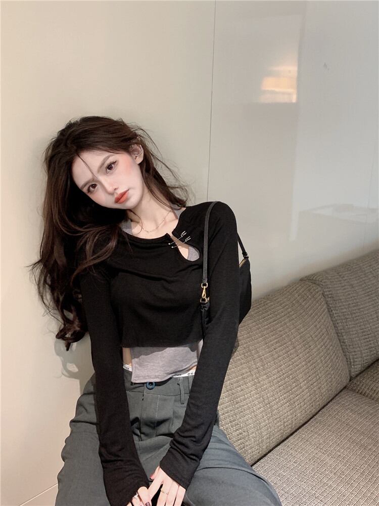 Tシャツ ショートブラックジャケット オータム ロング 秋物 ブラックストロベリース87382111475