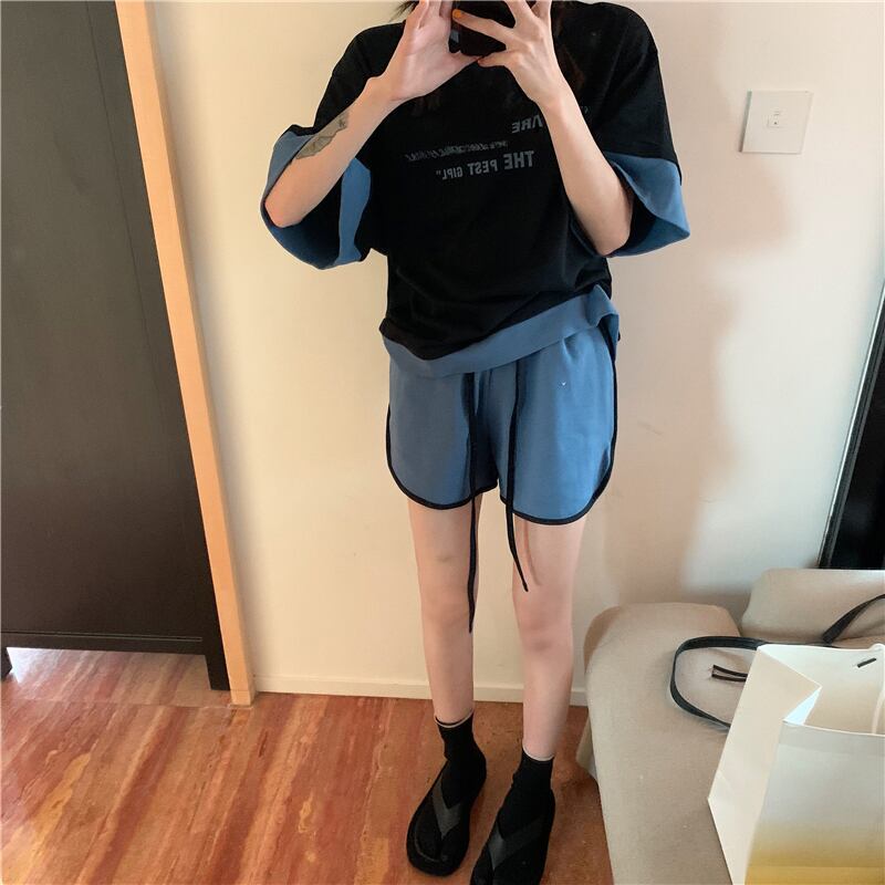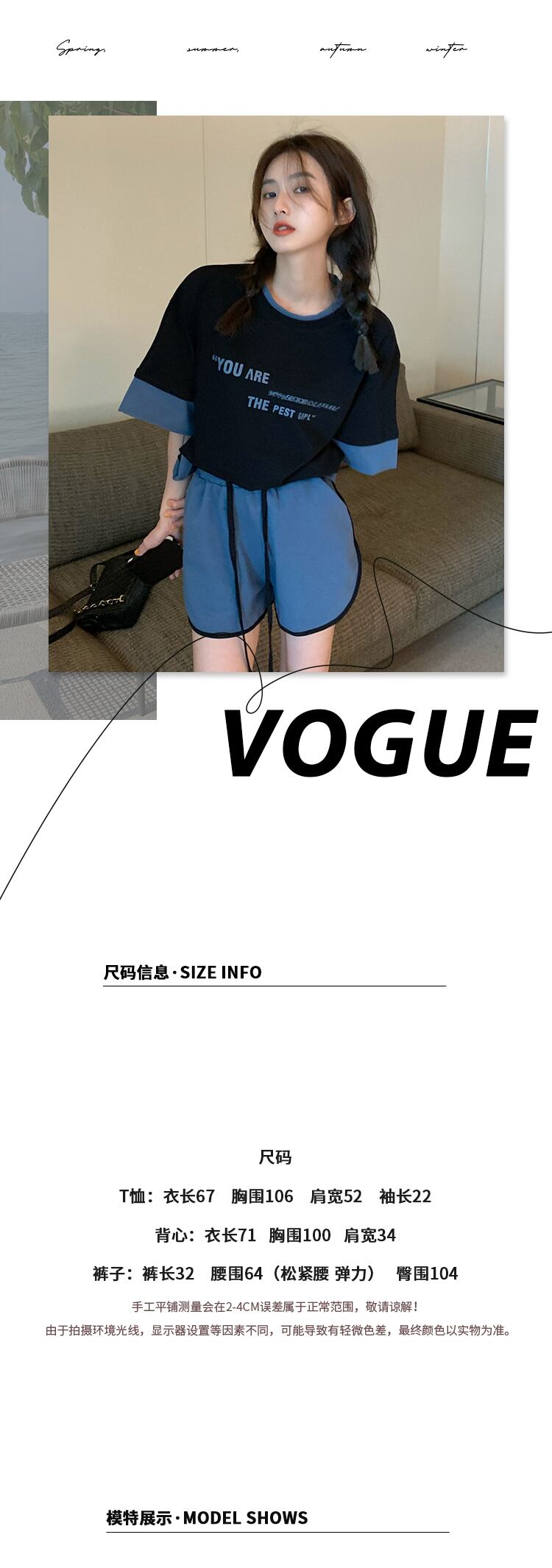 色:ブルーブラックベスト,ブルーブラックショーツ,青と黒のTシャツ