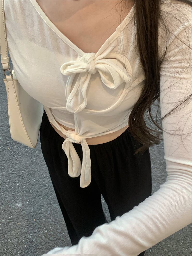 色:白いカーディガン,胸パッド付きの白いスリング,黒の伸縮性ウエストパンツ