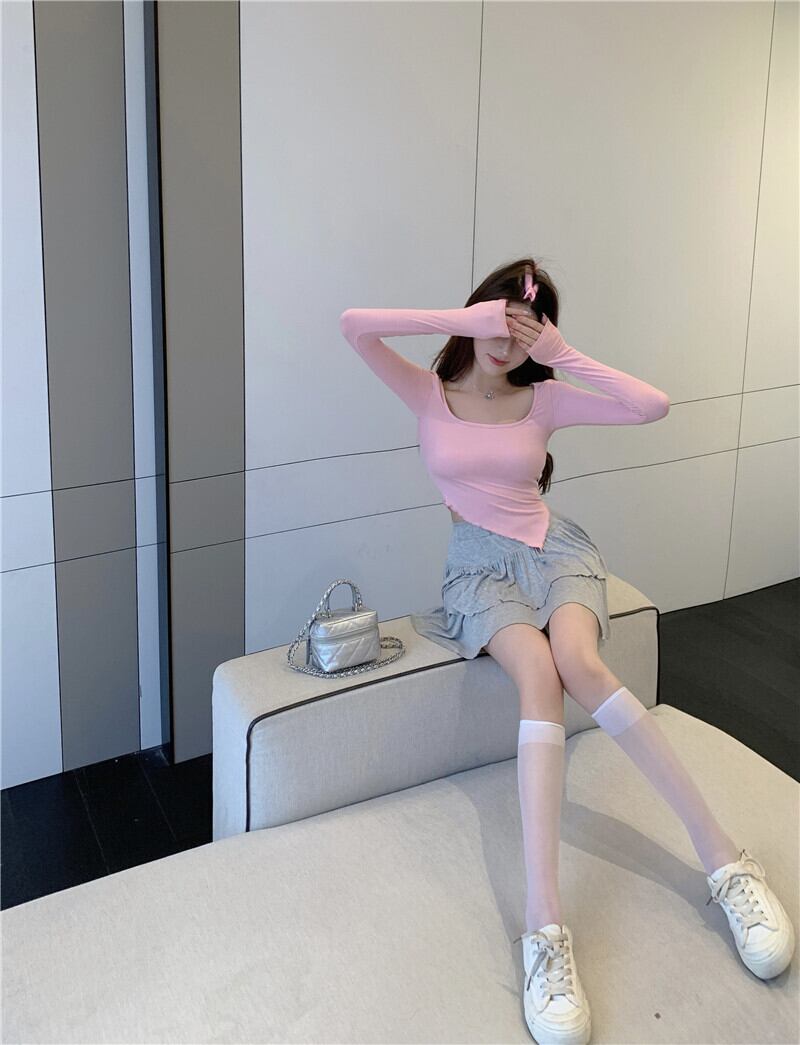 Tシャツ サマーショートトップス ロング ピンク 夏物 ピュア スクウェア ブラックストロベリース38337131137