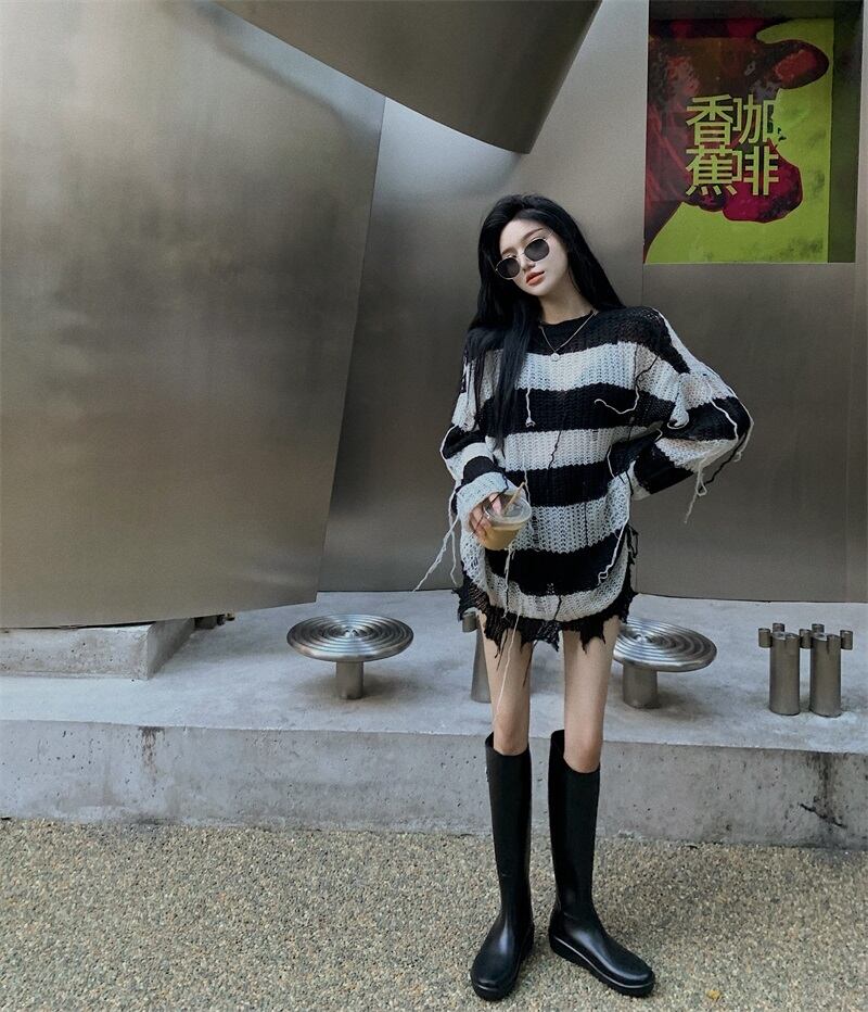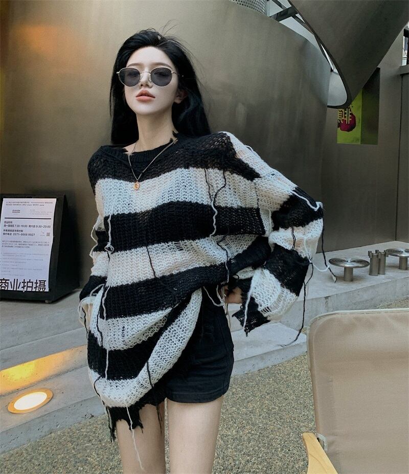 ストライプセーター オータムルーズスタイルトップス 秋物 ブラックストロベリース54116343391