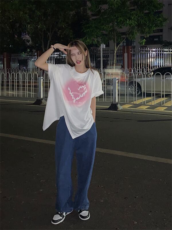 プリントTシャツ サマー薄手スタイルカジュアルルーズトップス 夏物 ブラックストロベリース29857753410